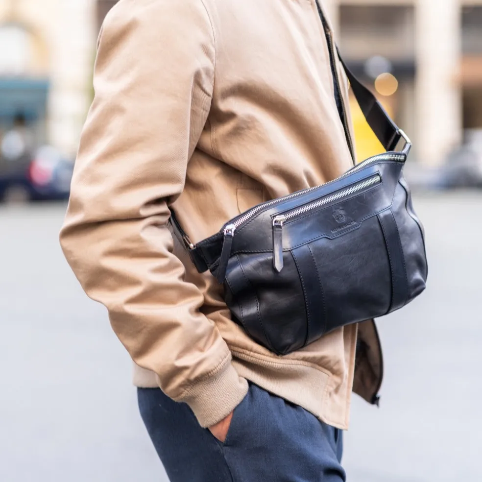 Le sac banane est bel et bien de retour ! Dans les défilés, la rue ou encore dans le dressing des influenceurs, il est partout. Revisité par la maison Melvin & Hamilton, le sac banane noir Barrie est le choix idéal ! Suffisamment grand pour y mettre vos effets personnels, ce sac en cuir de veau tannage végétal se distingue par son côté esthétique et fashion. Facile à porter, pratique, débarrassant les mains et les bras de tout accessoire, il conviendra aussi bien aux femmes qu’aux hommes et ajoute aussi une touche mode à n’importe quelle tenue. Notre sac banane est fait pour vous !