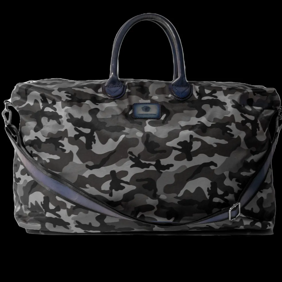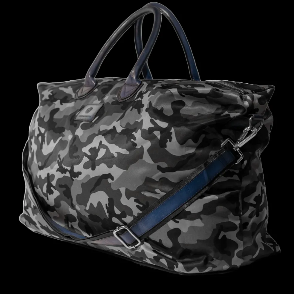 Les sacs de voyage, aussi appelés « duffle bags », sont particulièrement appréciés lors de déplacements de courte durée du type week-ends. Elégant, souple, léger et facile à porter, notre sac de voyage multicolore Duffy est fabriqué à partir d’un textile robuste qui convient donc pour un usage régulier et résistera aux mauvais traitements du transport. Confectionné à partir d’une toile de nylon, il a l’avantage de résister également à l’eau. Un sac de voyage parfait pour transporter toutes ses affaires grâce à un vaste espace de rangement : vêtements, trousse de toilette, laptop, portefeuille, clés, carnet… Avec son motif camouflage, ses poignées bleues et son discret logo Melvin & Hamilton, il n’attend plus que vous !