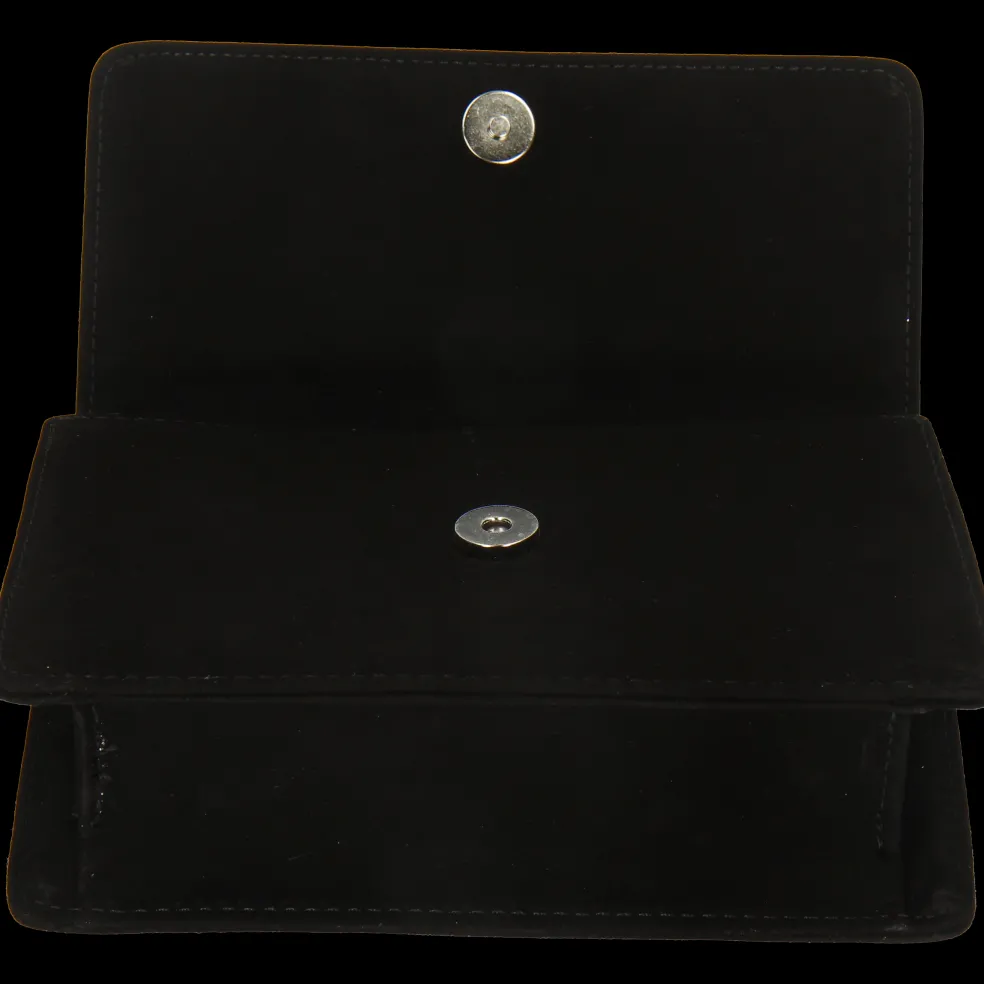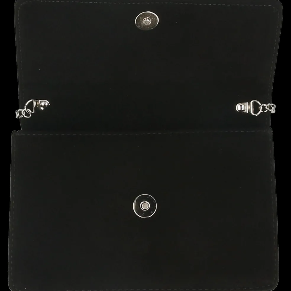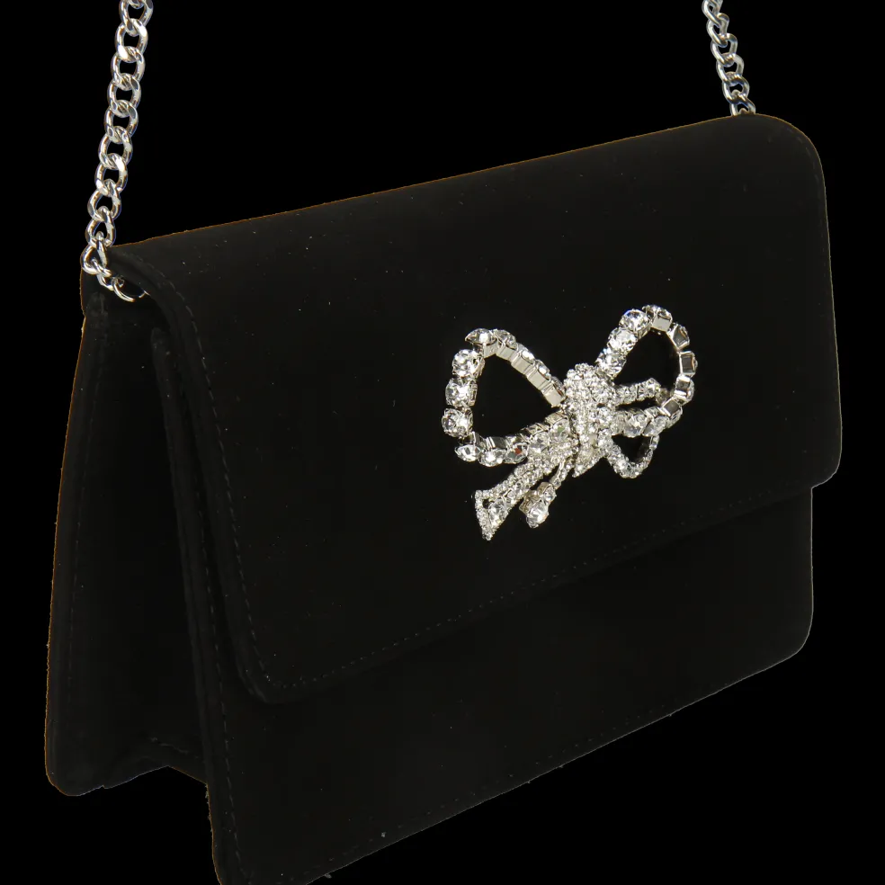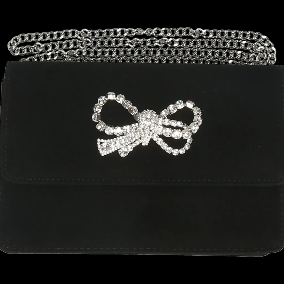 Melvin & Hamilton présente sa collection capsule exclusive en collaboration avec la marque italienne Fratelli Russo. Cette pochette décorée d’un fermoir magnétique orné de cristaux en forme de nœud est fabriquée en Italie. Le sac Franca en cuir velours noir est doté d’une couture ton sur ton pour une finition artisanale. La chaîne en métal vous permet de porter cette pochette également sur l’épaule.