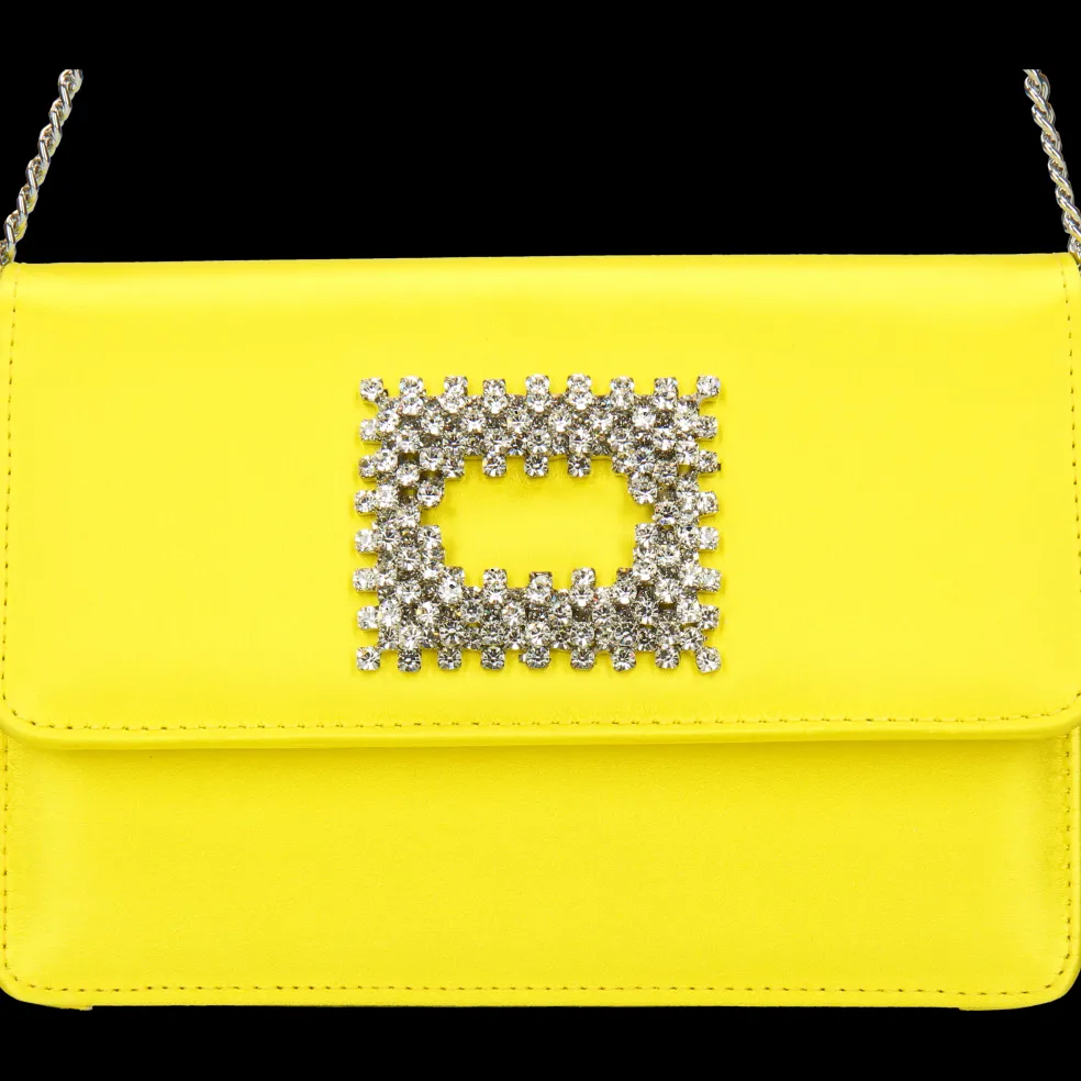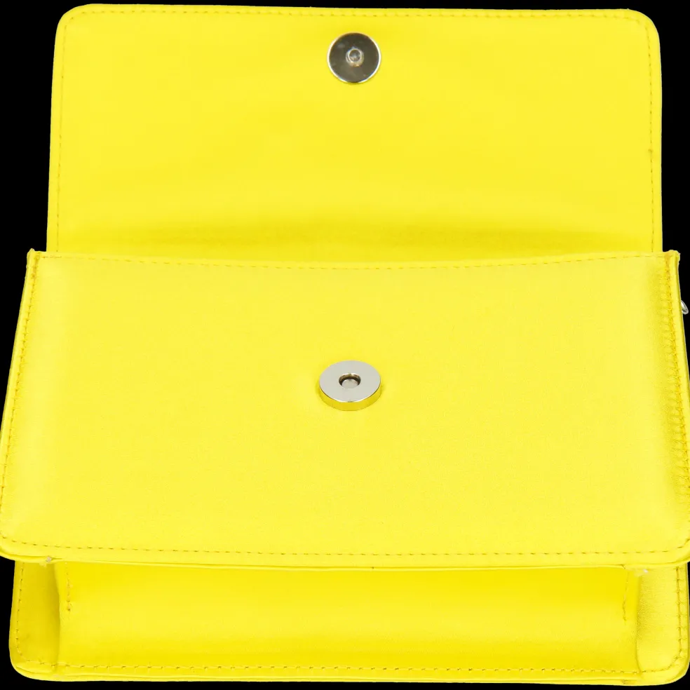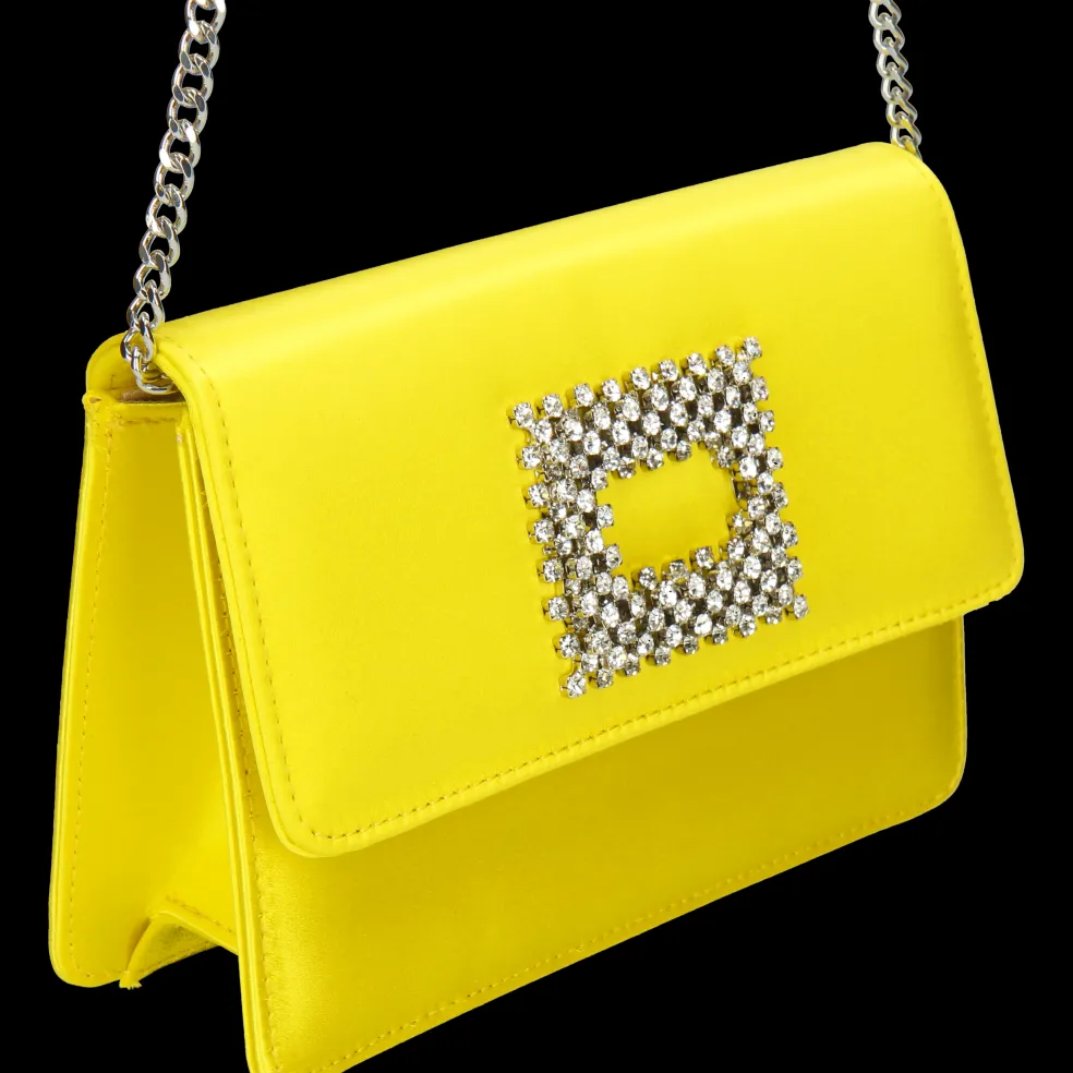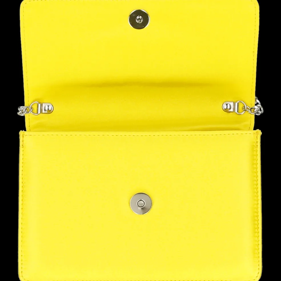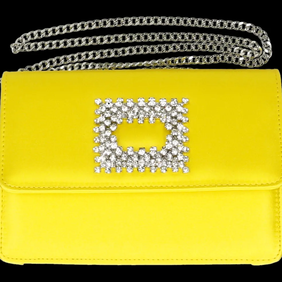Melvin & Hamilton présente sa collection capsule exclusive en collaboration avec la marque italienne Fratelli Russo. Cette pochette décorée d’un fermoir magnétique orné d’un rectangle de cristaux est fabriquée en Italie. Les coutures ton sur ton apportent une finition artisanale au sac à main jaune en satin Franca. La chaîne en métal vous permet de porter cette pochette également sur l’épaule.