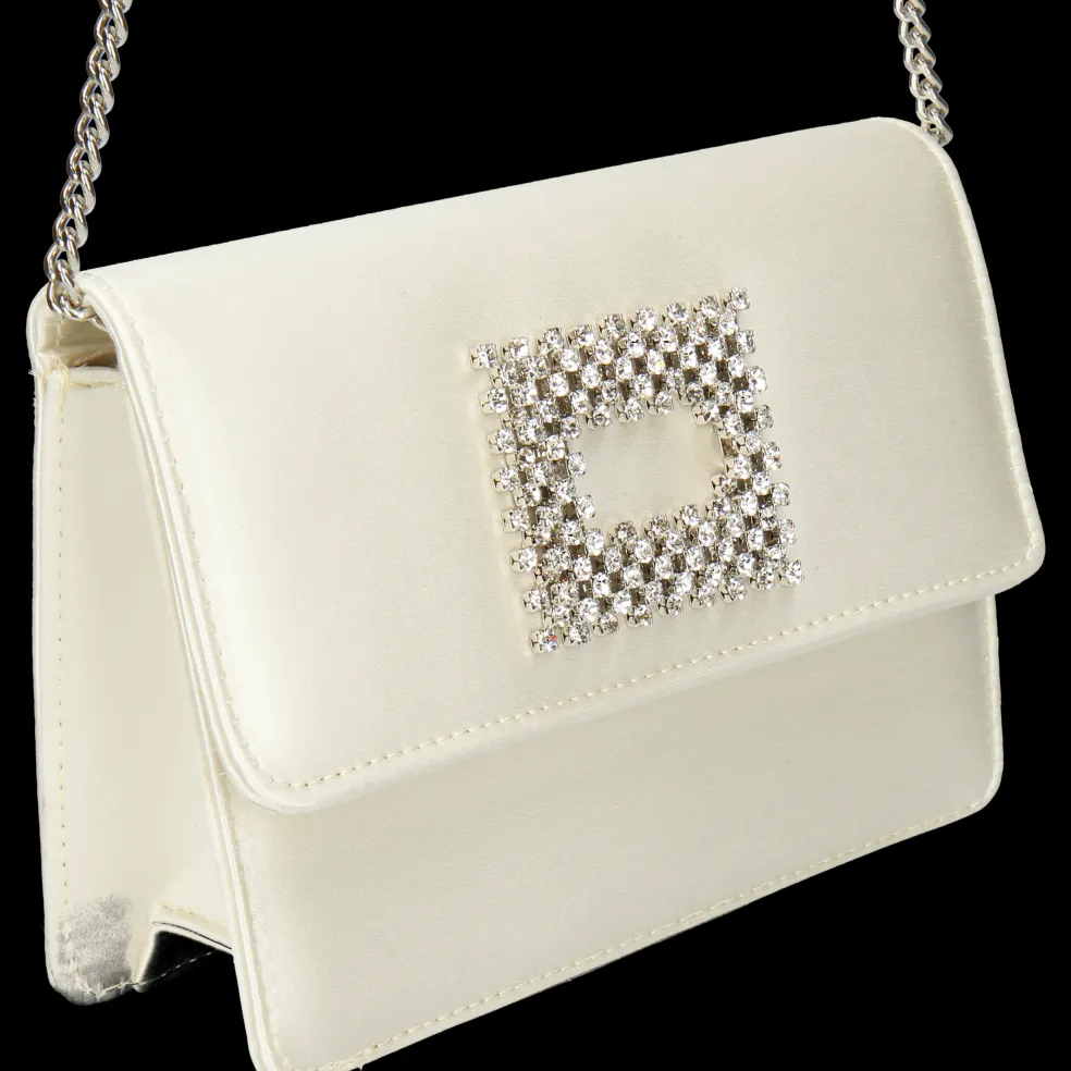 Melvin & Hamilton présente sa collection capsule exclusive en collaboration avec la marque italienne Fratelli Russo. Cette pochette décorée d’un fermoir magnétique orné d’un rectangle de cristaux est fabriquée en Italie. Les coutures ton sur ton apportent une finition artisanale au sac à main Franca en satin blanc. La chaîne en métal vous permet de porter cette pochette également sur l’épaule.