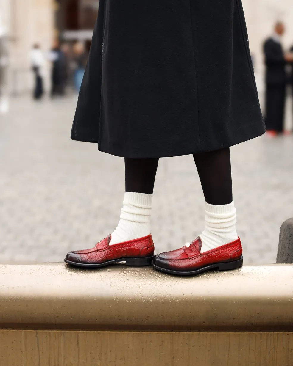 Melvin & Hamilton présente sa collection automne/hiver de mocassins pour femme. A barrette, à glands ou encore épurés de détails, les mocassins se déclinent sous bien des formes. Découvrez notre modèle en cuir Gianna 3, son caractère et comment le porter. Pour dynamiser une tenue classique ou au contraire pour jouer avec les couleurs et les motifs, ces mocassins en cuir rouge très originaux vous attendent ! Pendant la saison froide, toutes les touches de fantaisie sont les bienvenues pour contrer la grisaille ambiante. N’hésitez plus à sortir du lot, mais toujours en choisissant du cuir de qualité.