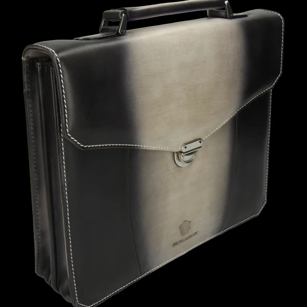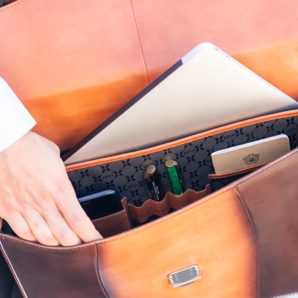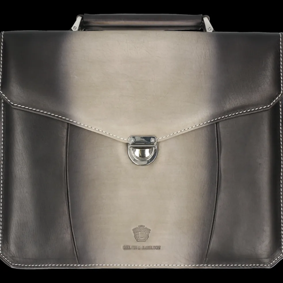 Un cartable ni trop grand ni trop petit pour y mettre votre laptop, vos documents, et toutes les choses dont vous avez besoin pour le bureau ? La serviette Kingston dessiné par Melvin & Hamilton est le choix idéal ! Avec son cuir gris aux nuances sombres, c’est un porte-document pratique mais pas dénué de style. Pièce de qualité de maroquinerie, c’est un investissement de choix grâce à son tannage végétal, sa durabilité et son style classique. Fermé par une robuste poignée en cuir et une serrure métallique, votre ordinateur et vos affaires seront parfaitement à l’abri. Que vous le portiez à la main ou sous le bras, c’est le cartable de toute une carrière, qui résistera à tous vos déplacements professionnels et trajets en ville !