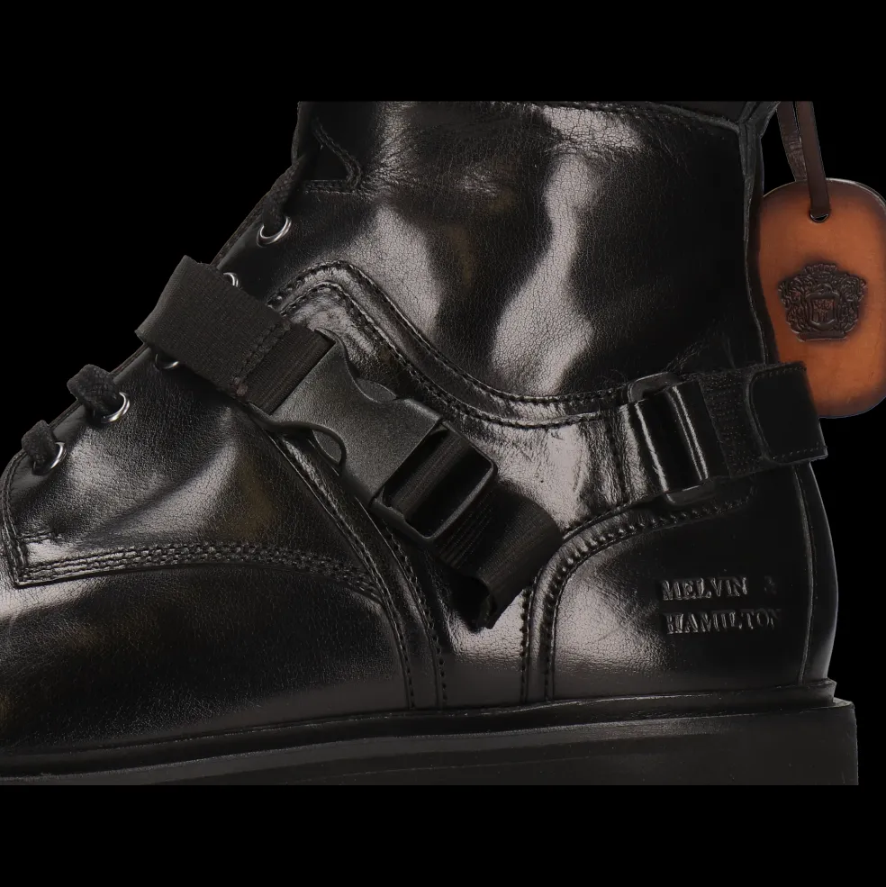 Craquez pour la collection automne/hiver de bottines en cuir pour homme par Melvin & Hamilton. La marque a mis tout son savoir-faire du travail du cuir dans la conception et la fabrication de bottines d’exception, modèles phares de la saison froide. Avec ce modèle Pierce 31, vous faites le choix de la qualité !Des bottines à bout rond en Cuir de veau tannage végétal Noir, rien de plus classique et de plus élégant même avec une petite touche originale, pour accompagner toutes vos tenues et notamment pour un look business chic. Ces boots à semelle en Gomme noir se portent particulièrement bien en hiver pour garder vos pieds au chaud.
