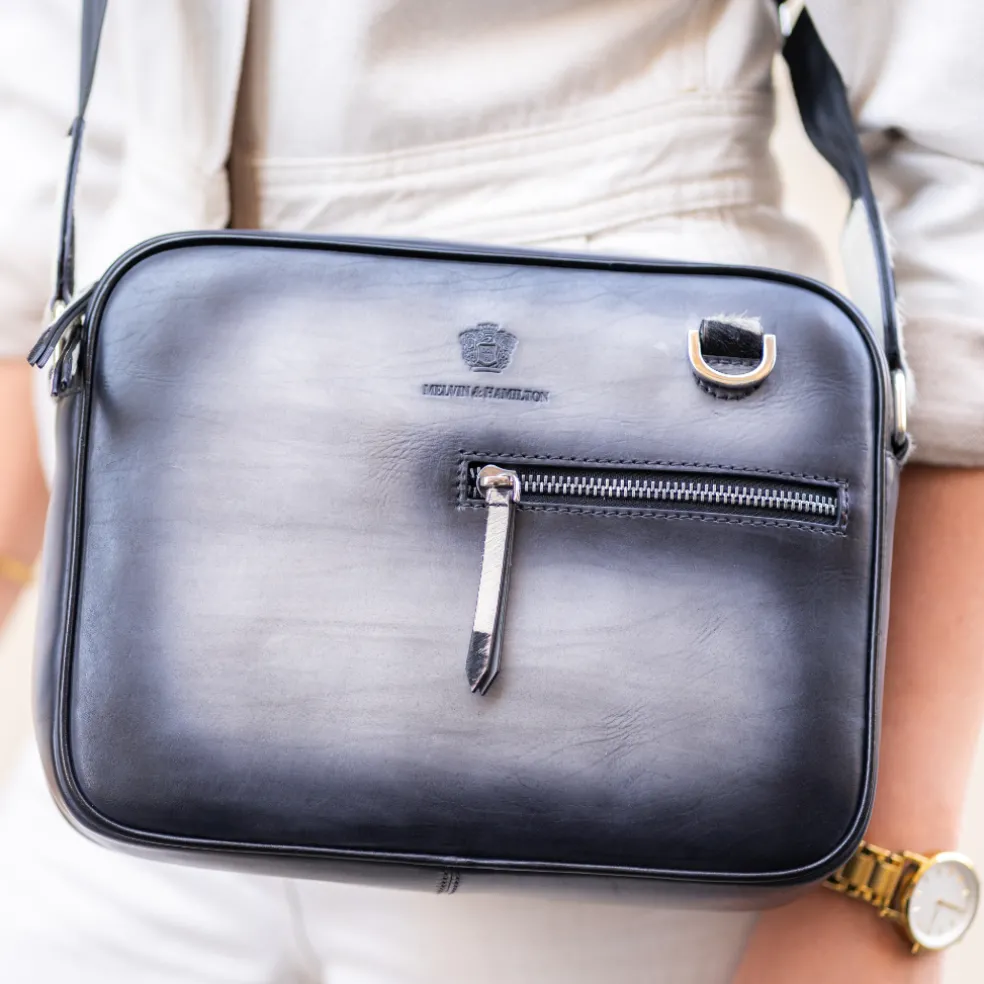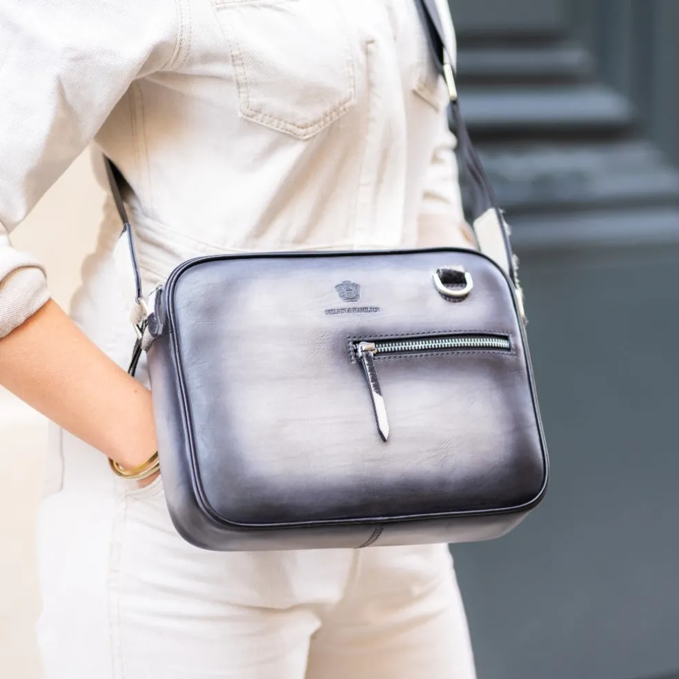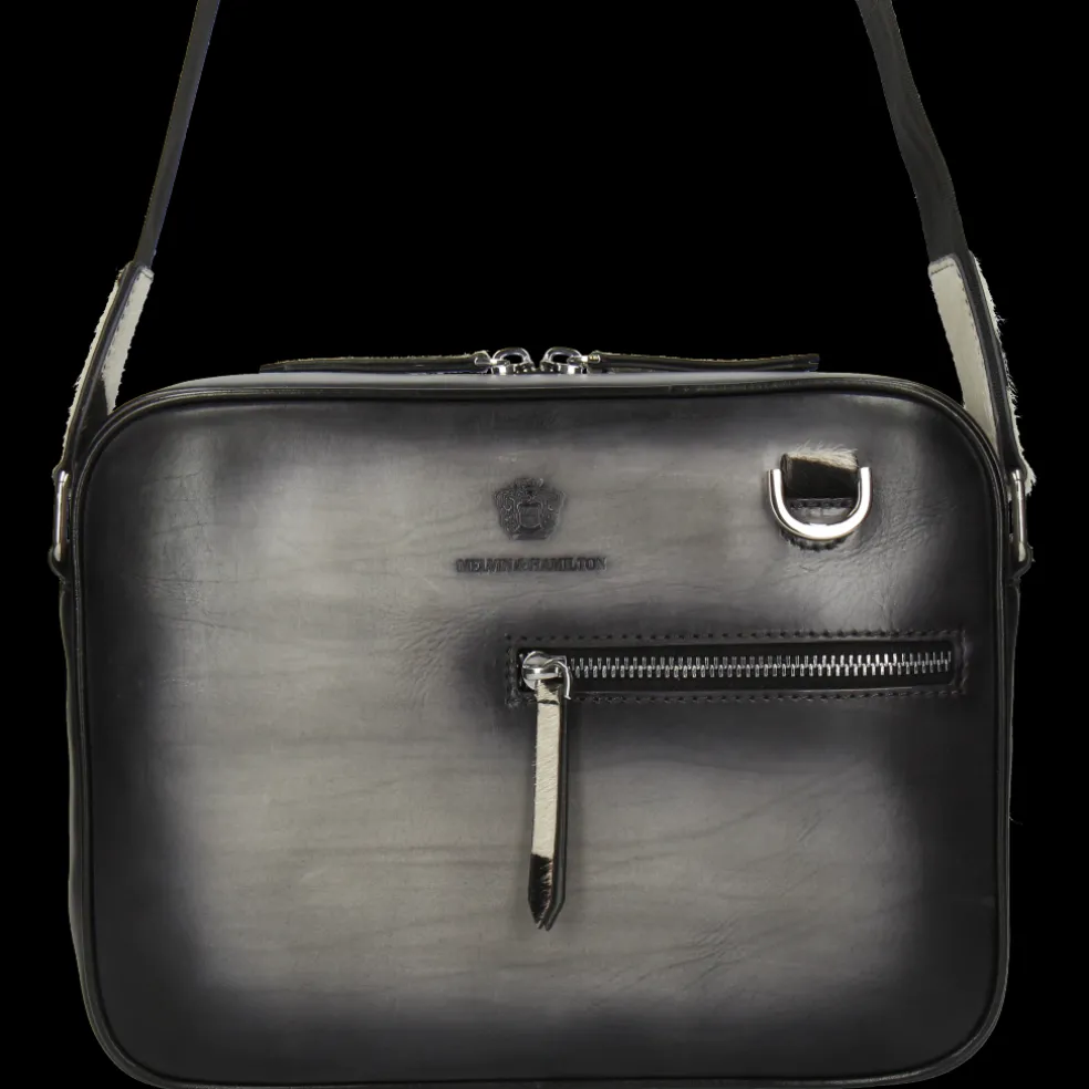 Vous cherchez un nouveau sac à main qui sorte de l’ordinaire ? Le sac à main Quebec gris dessiné par Melvin & Hamilton est le choix idéal ! Avec des dimensions généreuses pour y mettre de nombreux objets et effets personnels, ce sac en cuir de veau tannage végétal se distingue par son côté esthétique et fashion. Pouvant être porté à l’épaule, sous le bras ou en bandoulière, notre sac s’adaptera à toutes les envies en plus d’être pratique. La bandoulière en cuir de vache imprimé animal apporte une touche tendance et rock-chic à votre look. Il n’attend plus que vous !