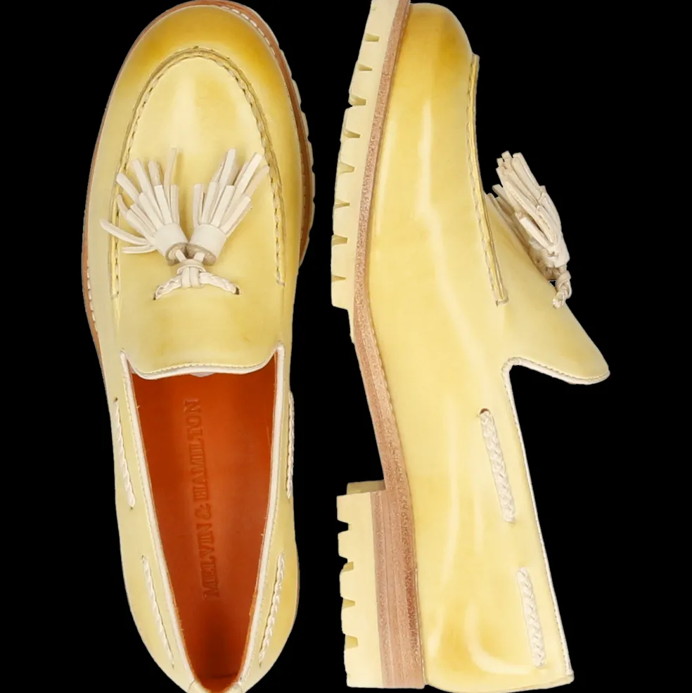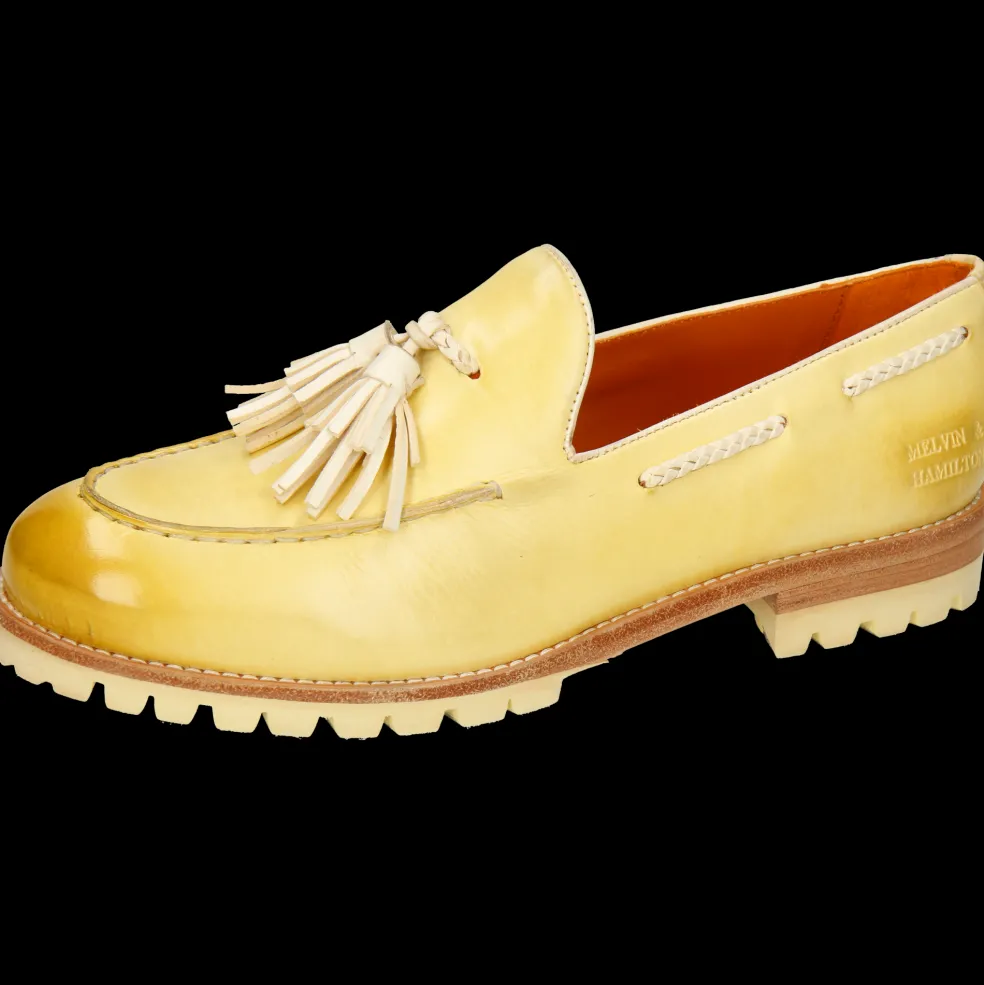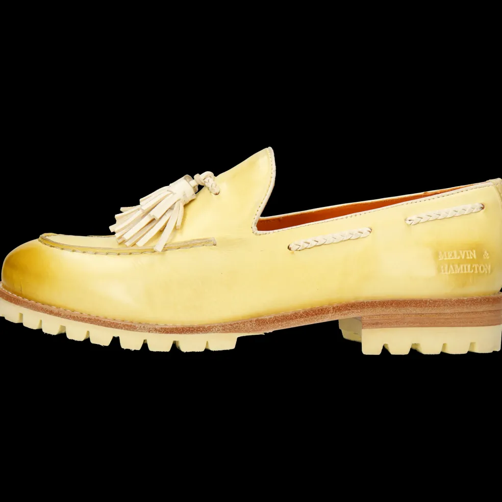 Melvin & Hamilton présente sa collection printemps/été de mocassins pour femme. A barrette, à glands ou encore épurés de détails, les mocassins se déclinent sous bien des formes. Découvrez notre modèle en cuir Regine 19, son caractère et comment le porter. Pour dynamiser une tenue classique ou au contraire pour jouer avec les couleurs et les motifs, ces mocassins en cuir jaune très originaux vous attendent ! Au printemps, toutes les touches de fantaisie sont les bienvenues pour accueillir les beaux jours. N’hésitez plus à sortir du lot, mais toujours en choisissant du cuir de qualité.