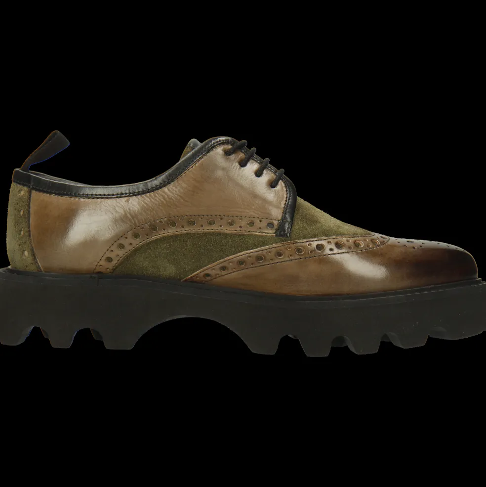 Melvin & Hamilton présente sa collection automne/hiver de derbies pour femme. Chaussures à lacets à la forme classique, elles s’accordent avec tous les styles et sont un élément incontournable à avoir dans sa garde-robe en automne et en hiver, lorsque l’on recherche le confort d’une chaussure fermée. Découvrez notre modèle de derby en cuir Selina 84, son caractère et comment le porter. Cette chaussure de ville élégante en cuir vert est un indispensable pour accompagner une tenue business classique, mais peut également s’accorder avec n’importe quel look, au travail ou pour vos sorties. Ce modèle de derby à lacets a l’avantage, grâce à sa couleur classique et unie, de se marier avec toutes les tenues sobres ou colorées de la saison.