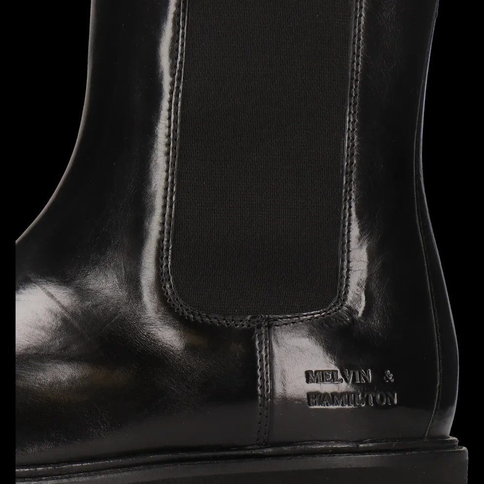 Melvin & Hamilton présente sa collection automne/hiver de bottes femme. Durant toute la saison elles allongeront élégamment vos jambes. Voici les caractéristiques de notre modèle en cuir Sybill 5.Des bottes à bout rond en Cuir de veau tannage végétal Noir, rien de tel pour accompagner vos jupes, robes ou jeans. Classiques ou avec une pointe d’originalité tout en sobriété, avec leur semelle en Gomme ultra-légère noir, elles vous apportent confort et féminité. Choisir ces bottes femme à Semelle plateforme, c’est opter pour une valeur sûre.