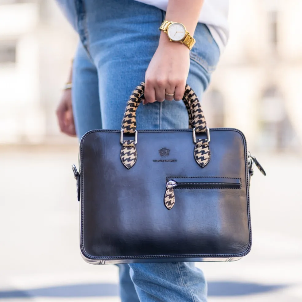 Vous cherchez un nouveau sac à main qui sorte de l’ordinaire ? Le sac à main Vancouver dessiné par Melvin & Hamilton est le choix idéal ! Avec des dimensions généreuses pour y mettre de nombreux objets et effets personnels, ce sac en cuir noir aux nuances sombres se distingue par son côté esthétique et fashion. Pouvant être porté à l’épaule, à la main ou en bandouilère, notre sac s’adaptera à toutes les envies en plus d’être pratique. Les poignées et la bandouilère en cuir de vachette imprimés animal apportent une touche tendance à votre look. Il n’attend plus que vous !