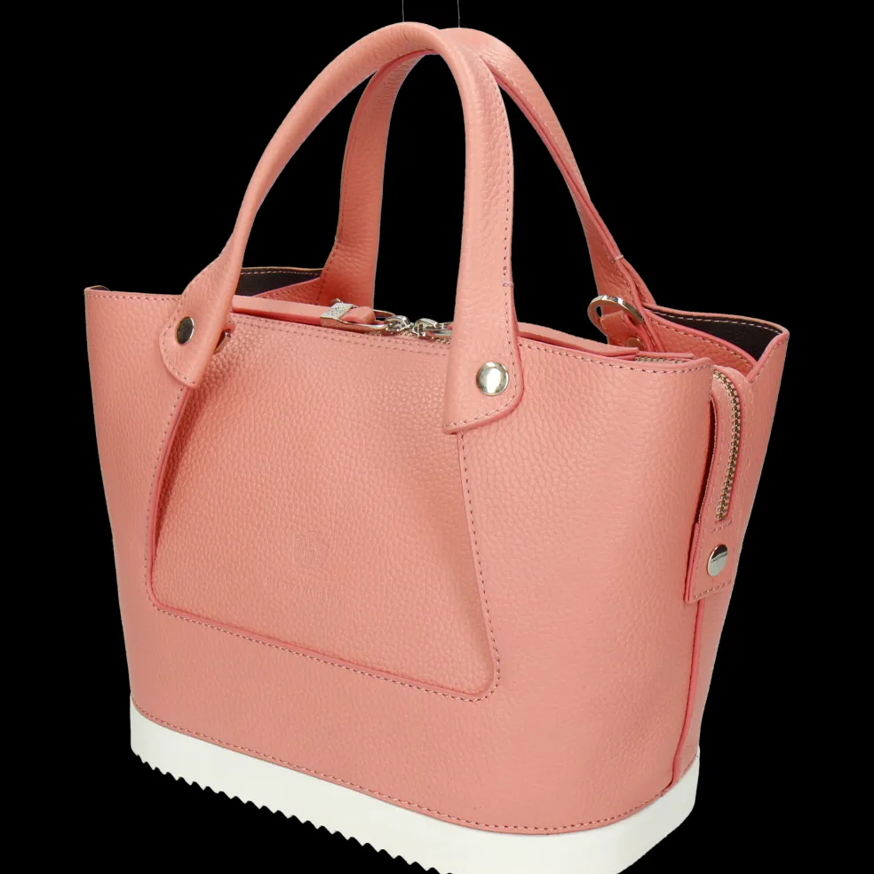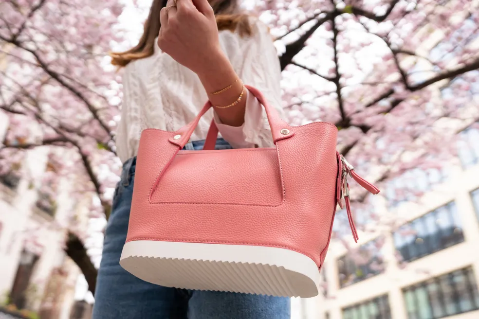 Vous cherchez un nouveau sac à main qui sorte de l’ordinaire ? Le sac à main Christine 1 en cuir rose dessiné par Melvin & Hamilton est le choix idéal ! Compact mais suffisamment large pour y mettre de nombreux objets et effets personnels, il comporte également une pochette zippée à l’intérieur. Porté à la main ou en bandoulière grâce à sa sangle amovible en tissu noir, notre sac en cuir est résistant et s’adapte à toutes vos envies. Il se distingue par son côté esthétique et fashion, mais aussi par son originalité grâce à son fond qui rappelle la semelle en gomme des chaussures de la marque. Vous pourrez ainsi le poser par terre sans craindre d’abîmer le cuir. Christine apportera la touche chic et tendance à votre look !