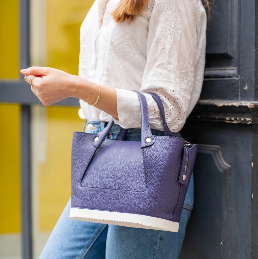 Vous cherchez un nouveau sac à main qui sorte de l’ordinaire ? Le sac à main Christine 1 en cuir violet dessiné par Melvin & Hamilton est le choix idéal ! Compact mais suffisamment large pour y mettre de nombreux objets et effets personnels, il comporte également une pochette zippée à l’intérieur. Porté à la main ou en bandoulière grâce à sa sangle amovible en tissu noir, notre sac en cuir est résistant et s’adapte à toutes vos envies. Il se distingue par son côté esthétique et fashion, mais aussi par son originalité grâce à son fond qui rappelle la semelle en gomme des chaussures de la marque. Vous pourrez ainsi le poser par terre sans craindre d’abîmer le cuir. Christine apportera la touche chic et tendance à votre look !