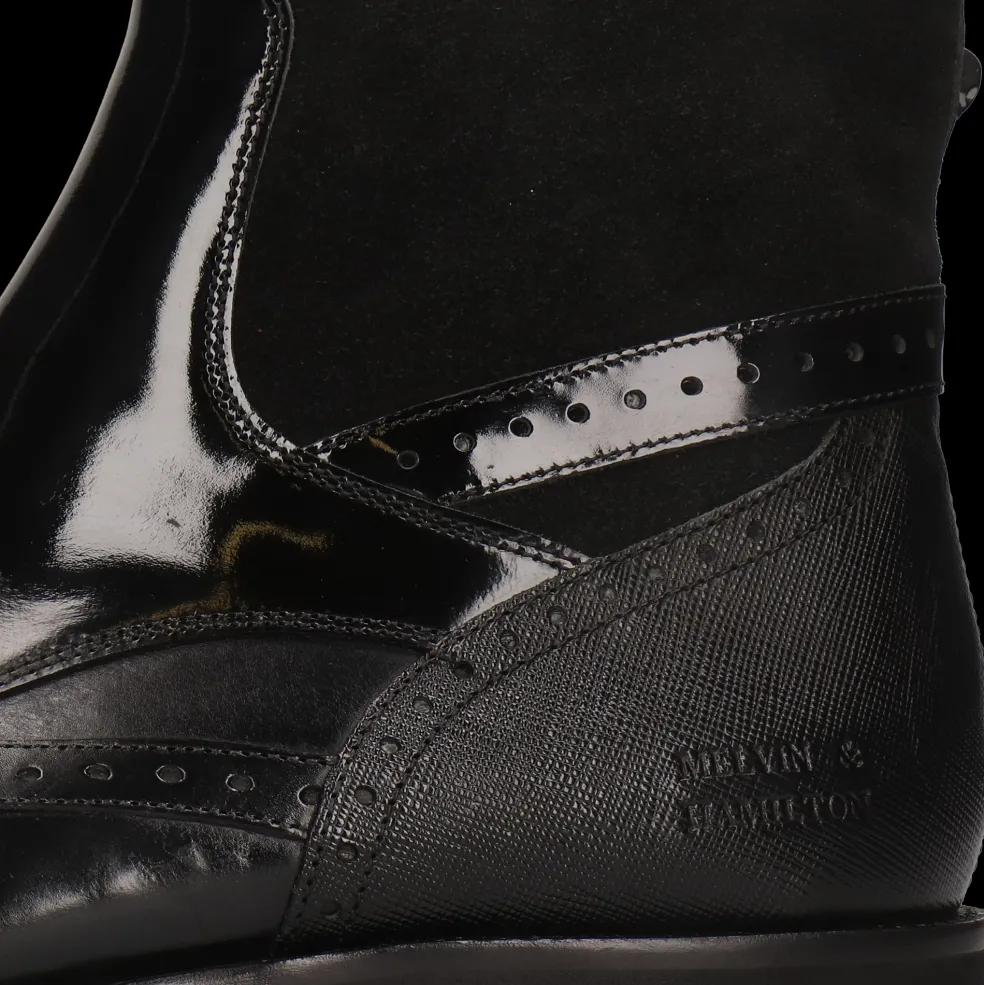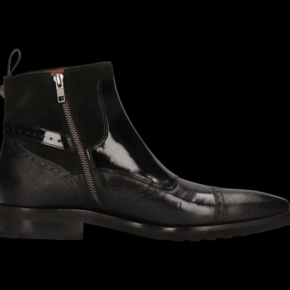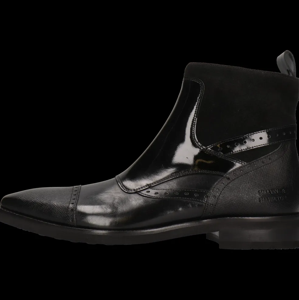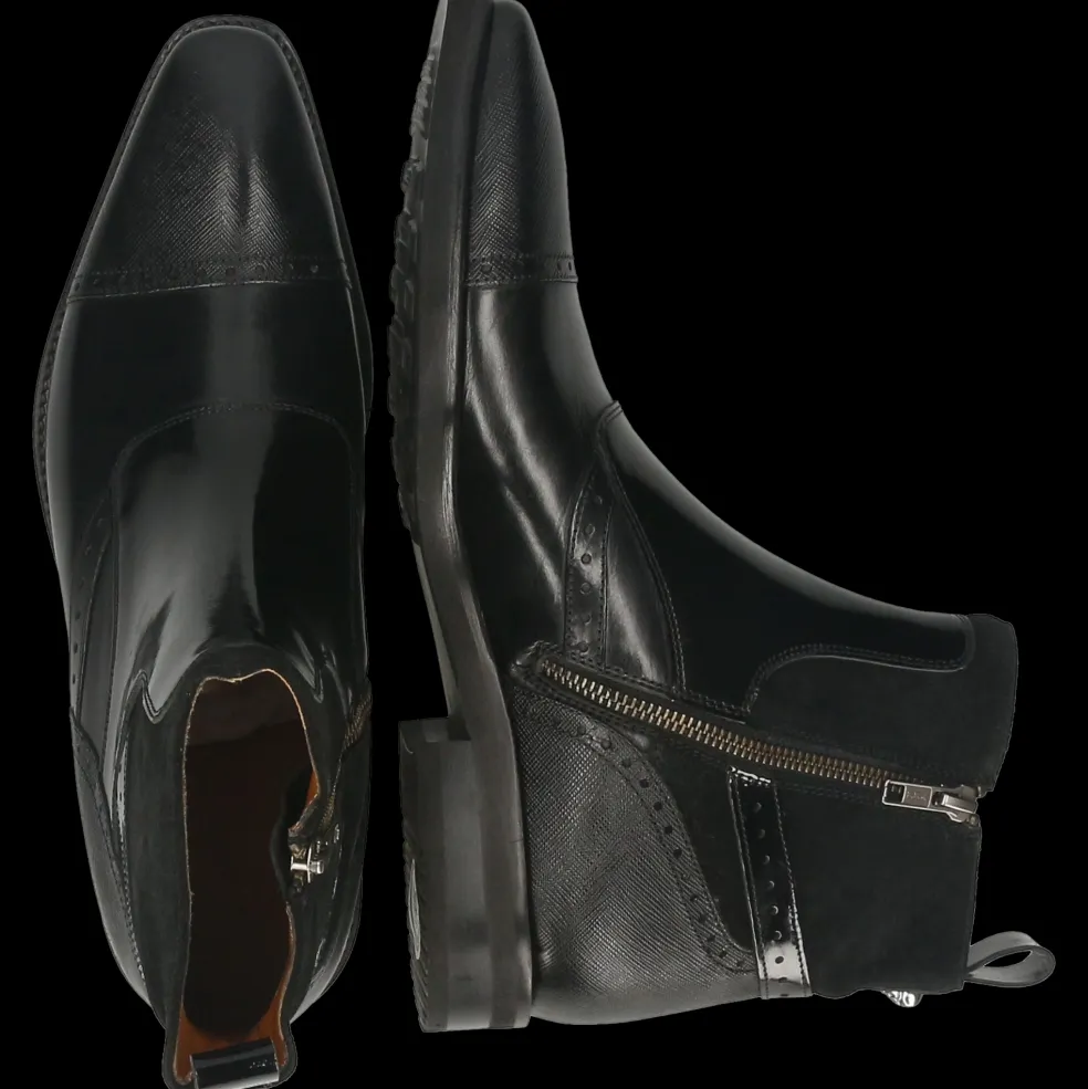 Craquez pour la collection automne/hiver de bottines en cuir pour homme par Melvin & Hamilton. La marque a mis tout son savoir-faire du travail du cuir dans la conception et la fabrication de bottines d’exception, modèles phares de la saison froide. Avec ce modèle Elvis 74, vous faites le choix de la qualité !Des bottines à bout pointu en Cuir de veau tannage végétal Noir, rien de plus classique et de plus élégant même avec une petite touche originale, pour accompagner toutes vos tenues et notamment pour un look business chic. Ces boots à semelle en Gomme noir se portent particulièrement bien en hiver pour garder vos pieds au chaud.