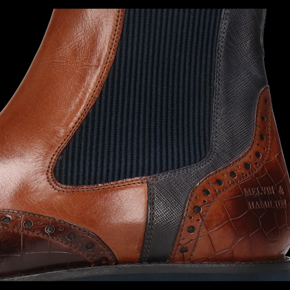 Craquez pour la collection automne/hiver de bottines en cuir pour homme par Melvin & Hamilton. La marque a mis tout son savoir-faire du travail du cuir dans la conception et la fabrication de bottines d’exception, modèles phares de la saison froide. Avec ce modèle Emil 9, vous faites le choix de la qualité !Des bottines à bout pointu en Cuir de veau tannage végétal Marron, rien de plus classique et de plus élégant même avec une petite touche originale, pour accompagner toutes vos tenues et notamment pour un look business chic. Ces boots à semelle en Gomme bleue se portent particulièrement bien en hiver pour garder vos pieds au chaud.