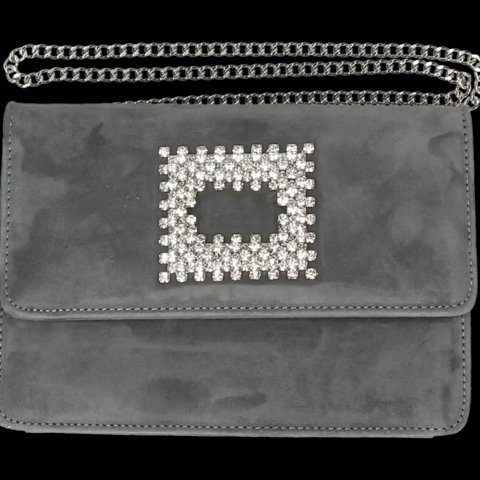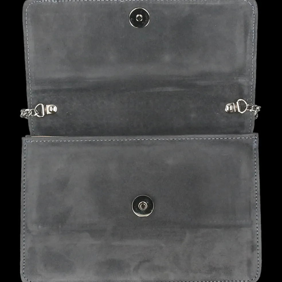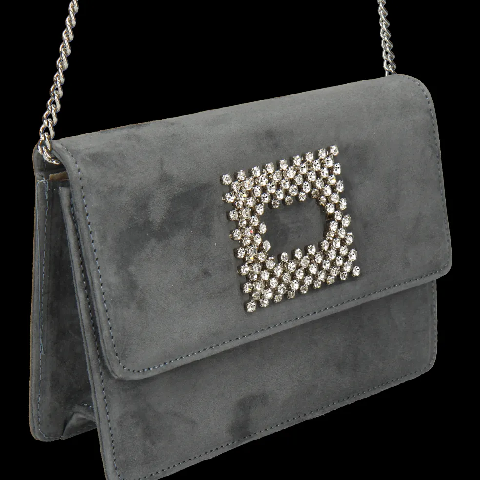 Melvin & Hamilton présente sa collection capsule exclusive en collaboration avec la marque italienne Fratelli Russo. Cette pochette décorée d’un fermoir magnétique orné d’un rectangle de cristaux est fabriquée en Italie. Le sac Franca en cuir suédé gris présente une couture ton sur ton pour une finition artisanale. La chaîne en métal vous permet de porter cette pochette également sur l’épaule.