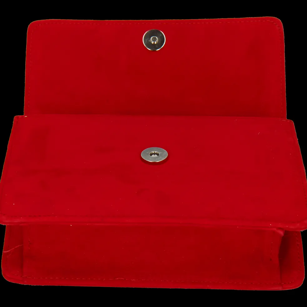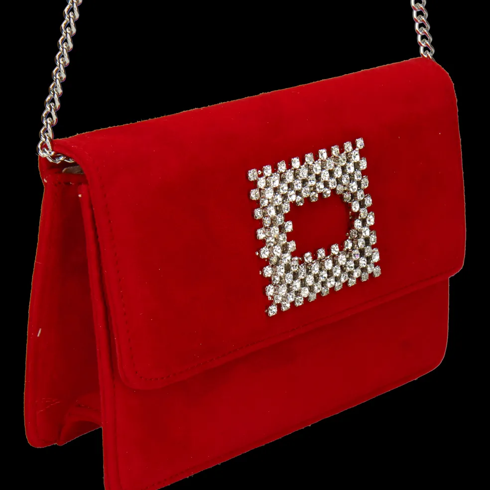 Melvin & Hamilton présente sa collection capsule exclusive en collaboration avec la marque italienne Fratelli Russo. Cette pochette décorée d’un fermoir magnétique orné d’un rectangle de cristaux est fabriquée en Italie. Le sac Franca en cuir suédé rouge présente une couture ton sur ton pour une finition artisanale. La chaîne en métal vous permet de porter cette pochette également sur l’épaule.