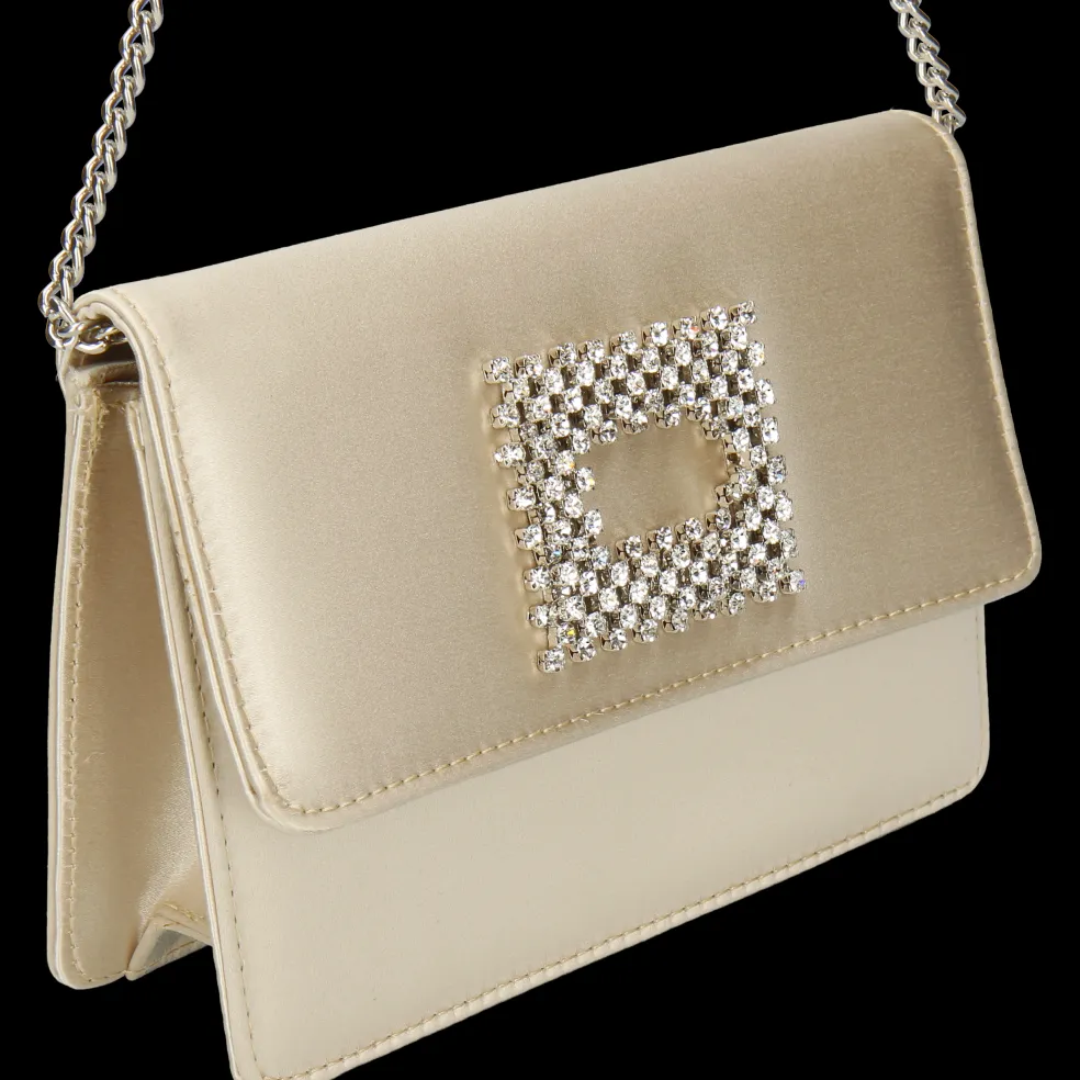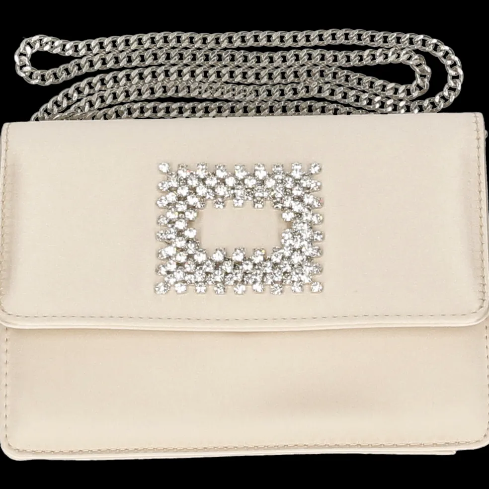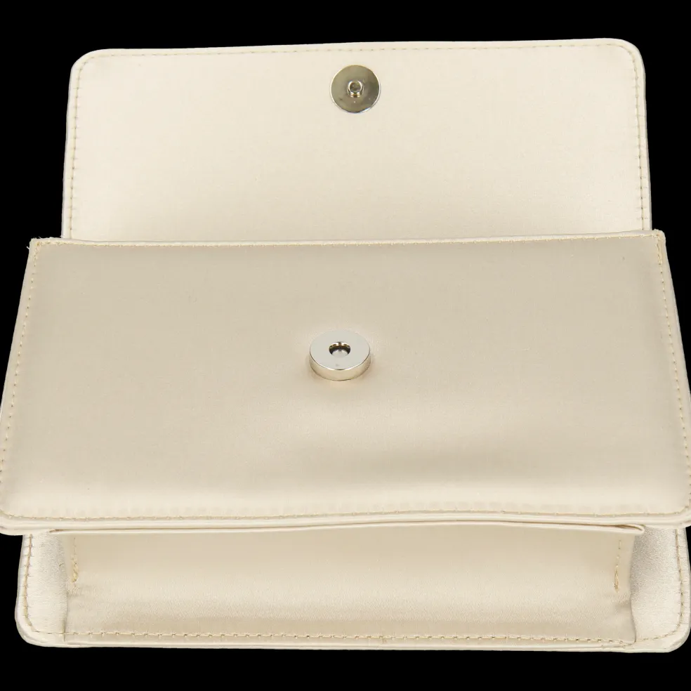 Melvin & Hamilton présente sa collection capsule exclusive en collaboration avec la marque italienne Fratelli Russo. Cette pochette décorée d’un fermoir magnétique orné d’un rectangle de cristaux est fabriquée en Italie. Les coutures ton sur ton apportent une finition artisanale au sac à main Franca en satin beige. La chaîne en métal vous permet de porter cette pochette également sur l’épaule.