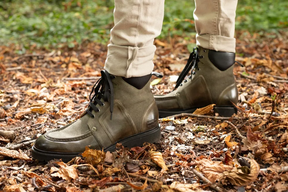 Découvrez la collection automne/hiver de bottines en cuir pour homme par Melvin & Hamilton. La marque a mis tout son savoir-faire du travail du cuir dans la conception et la fabrication de bottines d’exception, modèles phares de la saison froide. Avec ce modèle George 1, vous faites le choix de la qualité ! Osez l’originalité avec ces boots en cuir vert et sortez du lot ! Des couleurs chaleureuses, des motifs tendances, de quoi apporter de la gaieté dans la morosité de la saison ! Portez ces bottines avec un jean basique pour réhausser votre tenue.