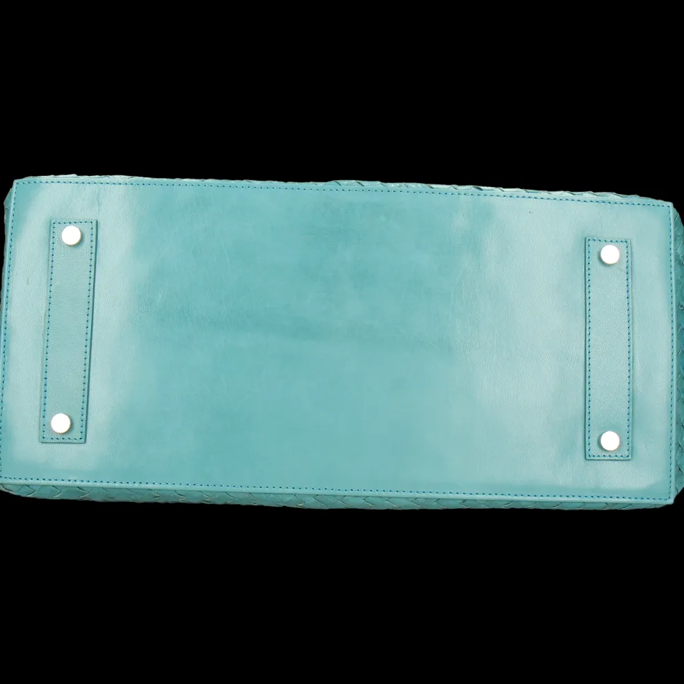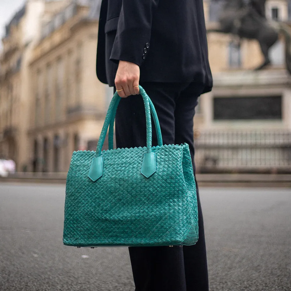 Vous cherchez un nouveau sac à main qui sorte de l’ordinaire ? Le sac à main Kimberly 1 dessiné par Melvin & Hamilton est le choix idéal ! Avec des dimensions très généreuses pour y mettre de nombreux objets et effets personnels, ce sac en cuir tressé turquoise se distingue par son côté esthétique et fashion. Pouvant être porté à la main ou à l’épaule, notre sac s’adaptera à toutes les envies en plus d’être pratique. De plus, nous avons conçu des poignées robustes qui ne vous lacheront pas d’aussitôt ! Fabriqué à partir d’un cuir tressé tannage végétal, il est entièrement durable et vous accompagnera saison après saison. Il n’attend plus que vous !