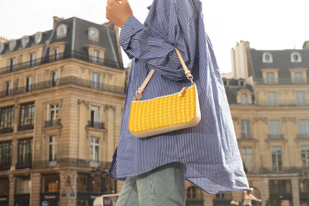 Vous cherchez un nouveau sac à main qui sorte de l’ordinaire ? Le sac baguette Maya en cuir tressé jaune dessiné par Melvin & Hamilton est le choix idéal ! Sa forme en fait le sac à main parfait pour une virée shopping. Porté à la main ou à l’épaule avec son anse en cuir, notre sac baguette est résistant grâce à la bande de cuir de qualité qui renforce les côtés et le dessous. Il se distingue par son côté esthétique et fashion et apportera la touche chic et tendance à votre look. Maya n’attend plus que vous !