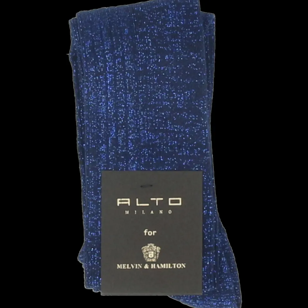 Craquez pour les chaussettes longues Menton en bleu, leur coupe haute et leur design unique. Avec leur aspect à la fois côtelé et pailleté, ce modèle apportera la touche glamour et féminine pour parfaire votre look. Dessinées et fabriquées par Alto Milano pour Melvin & Hamilton, les chaussettes Menton sont constituées à 80% de coton, ce qui en fait une chaussette confortable et agréable au quotidien.