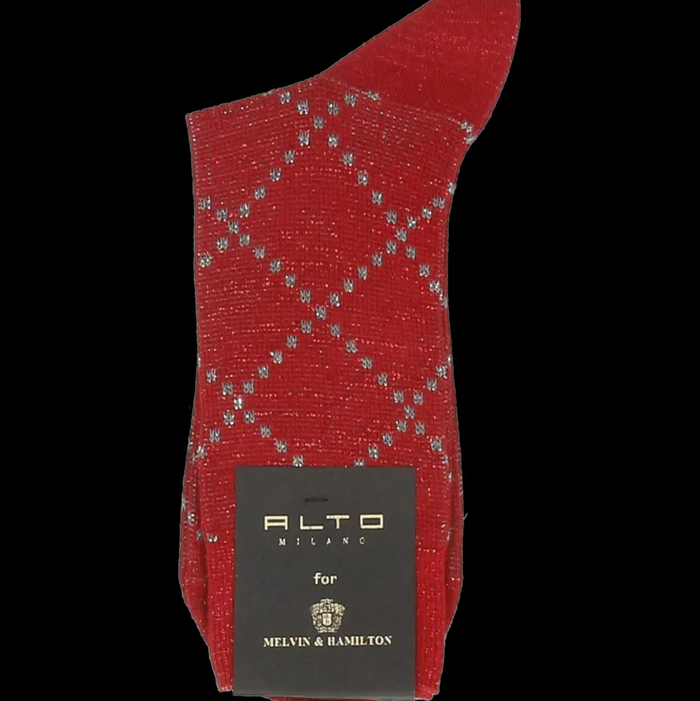 Les chaussettes mi-longues Monaco en rouge attirent tous les regards avec leur design pailleté aux motifs en forme de losanges, pour une touche glamour et féminine. Dessinées et fabriquées par Alto Milano pour Melvin & Hamilton, les chaussettes Monaco sont constituées à 80% de coton, à 14% de polyamide et à 6% de polyester, pour la rendre confortable et agréable à porter au quotidien.