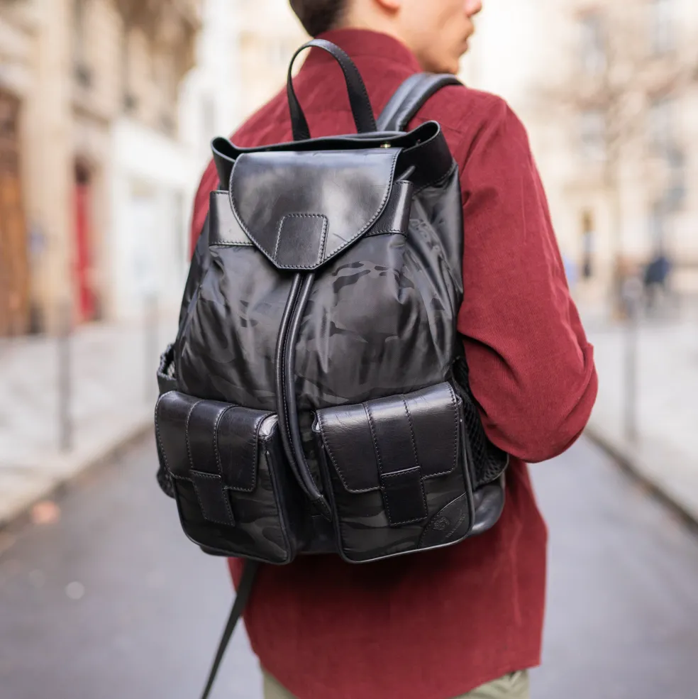 Jouons avec les effets de matière ! Notre sac à dos Ottawa est un mélange de textile et de cuir tannage végétal, très tendance, pour un style affirmé ! Confectionné en cuir de veau de grande qualité, il sera sans conteste l’allié de vos déplacements professionnels, mais aussi de tous vos courts séjours et même au quotidien ! Cette version colorée en noir est parfaite pour apporter une touche de fantaisie. Les bretelles sont faciles à enfiler et le rendent très confortable à porter, et vous serez surpris de voir la simplicité de leur réglage grâce aux boucles à ajuster. Un sac à dos parfait pour transporter ses affaires ou aller au bureau : des vêtements, un laptop, un portefeuille, des clés, un carnet… grâce à un grand espace intérieur, deux poches extérieures ainsi que deux poches filets sur les cotés.