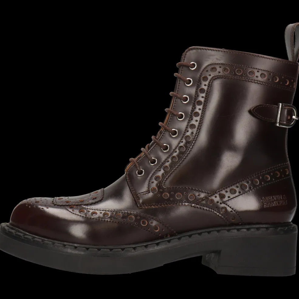 Melvin & Hamilton présente sa collection automne/hiver de bottes femme. Durant toute la saison elles allongeront élégamment vos jambes. Voici les caractéristiques de notre modèle en cuir Pia 5.Des bottes à bout rond en Cuir de veau tannage végétal Marron, rien de tel pour accompagner vos jupes, robes ou jeans. Classiques ou avec une pointe d’originalité tout en sobriété, avec leur semelle en Gomme marron, elles vous apportent confort et féminité. Choisir ces bottes femme à Talon bottier, c’est opter pour une valeur sûre.