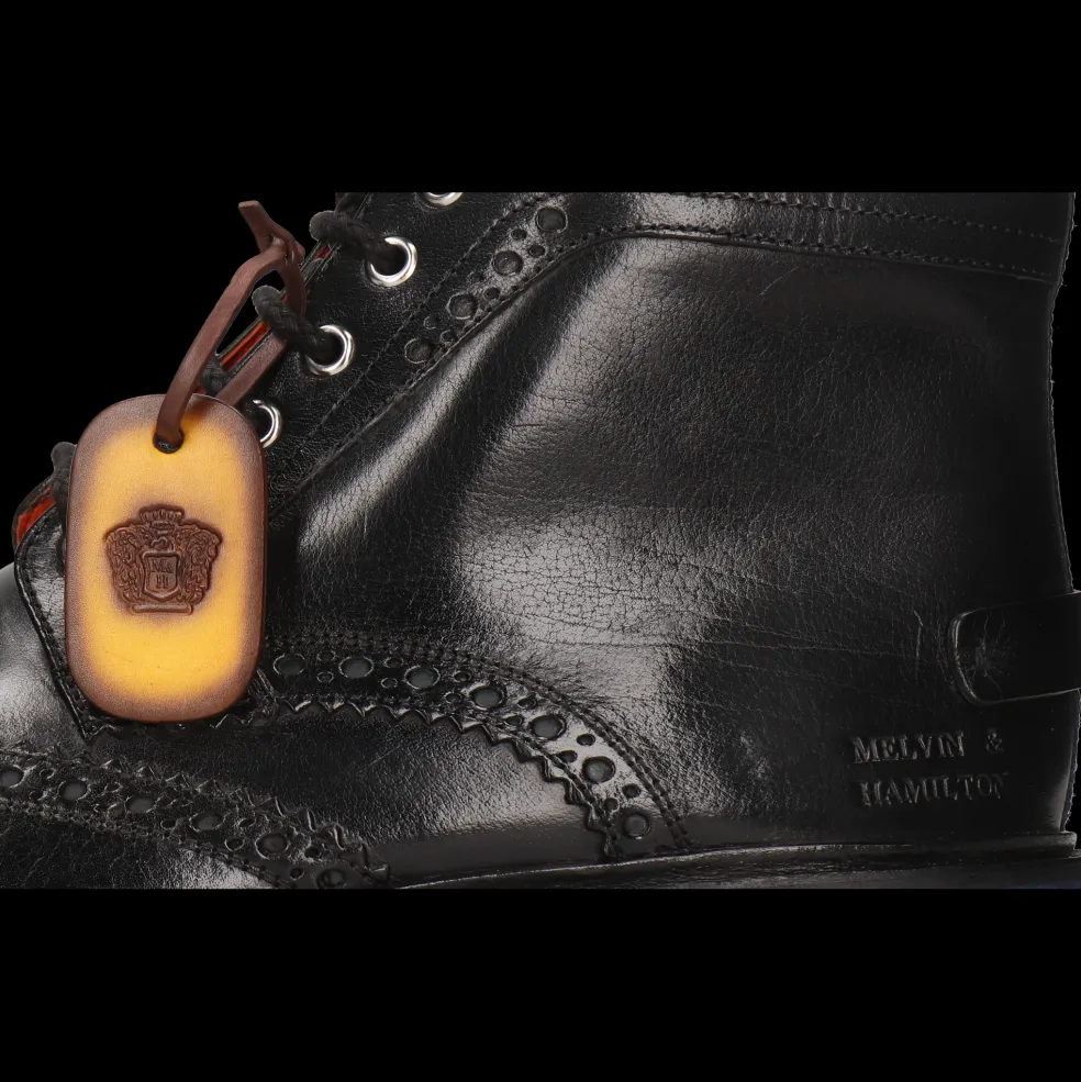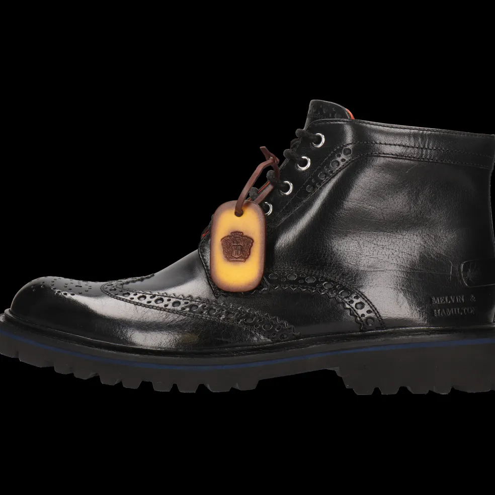 Craquez pour la collection automne/hiver de bottines en cuir pour homme par Melvin & Hamilton. La marque a mis tout son savoir-faire du travail du cuir dans la conception et la fabrication de bottines d’exception, modèles phares de la saison froide. Avec ce modèle Pierce 21, vous faites le choix de la qualité !Des bottines à bout rond en Cuir de veau tannage végétal Noir, rien de plus classique et de plus élégant même avec une petite touche originale, pour accompagner toutes vos tenues et notamment pour un look business chic. Ces boots à semelle en Gomme noir se portent particulièrement bien en hiver pour garder vos pieds au chaud.