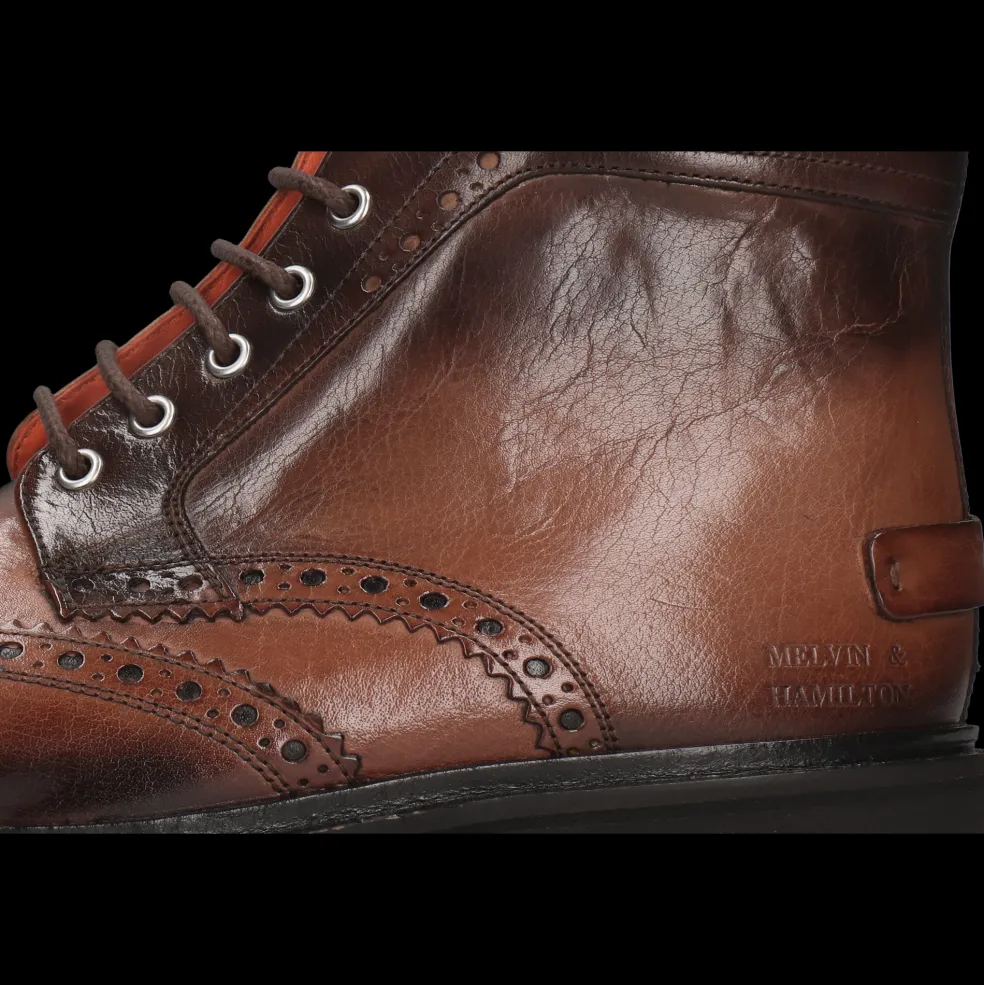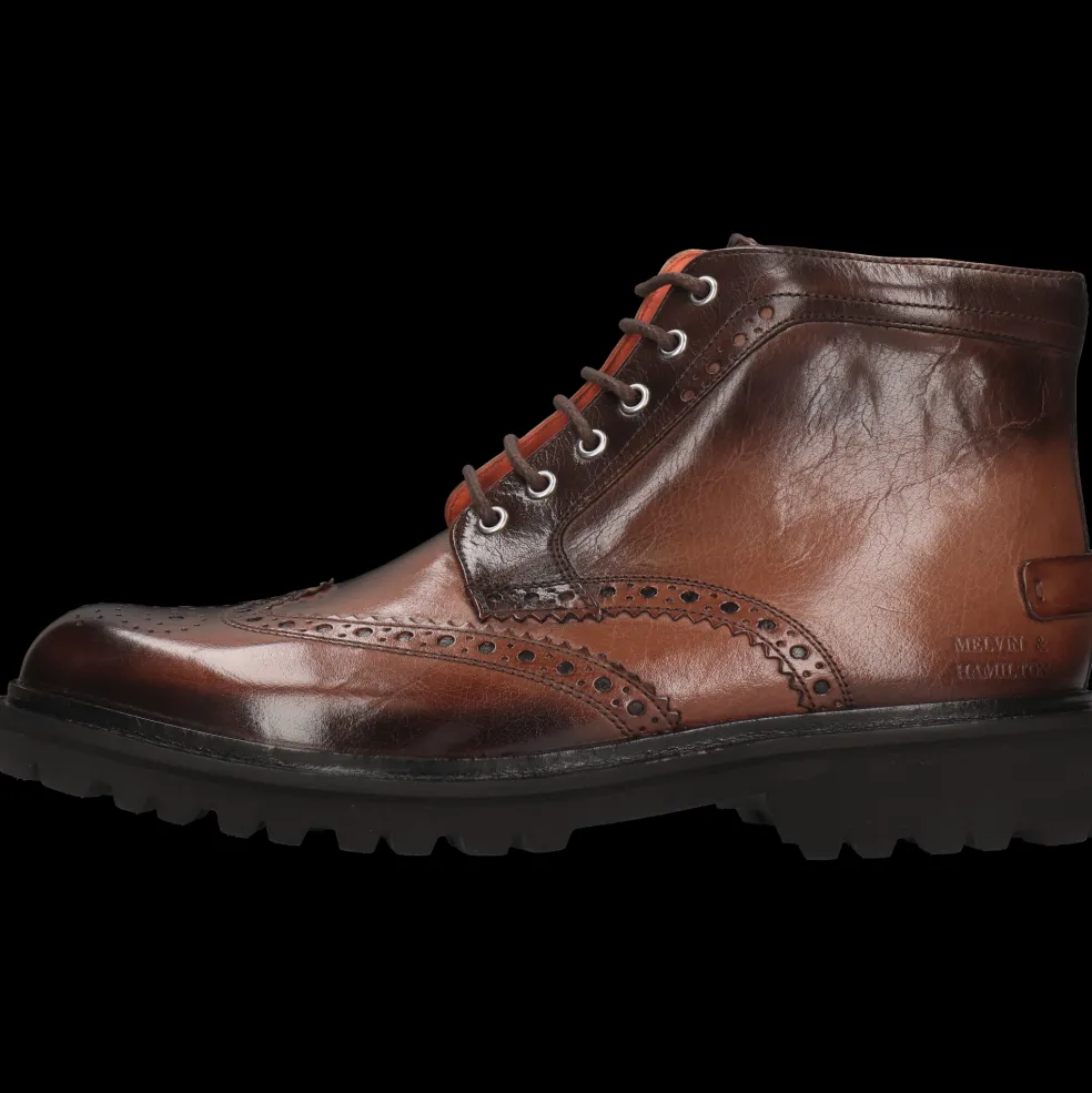 Craquez pour la collection automne/hiver de bottines en cuir pour homme par Melvin & Hamilton. La marque a mis tout son savoir-faire du travail du cuir dans la conception et la fabrication de bottines d’exception, modèles phares de la saison froide. Avec ce modèle Pierce 21, vous faites le choix de la qualité !Des bottines à bout rond en Cuir de veau tannage végétal Marron, rien de plus classique et de plus élégant même avec une petite touche originale, pour accompagner toutes vos tenues et notamment pour un look business chic. Ces boots à semelle en Gomme noir se portent particulièrement bien en hiver pour garder vos pieds au chaud.