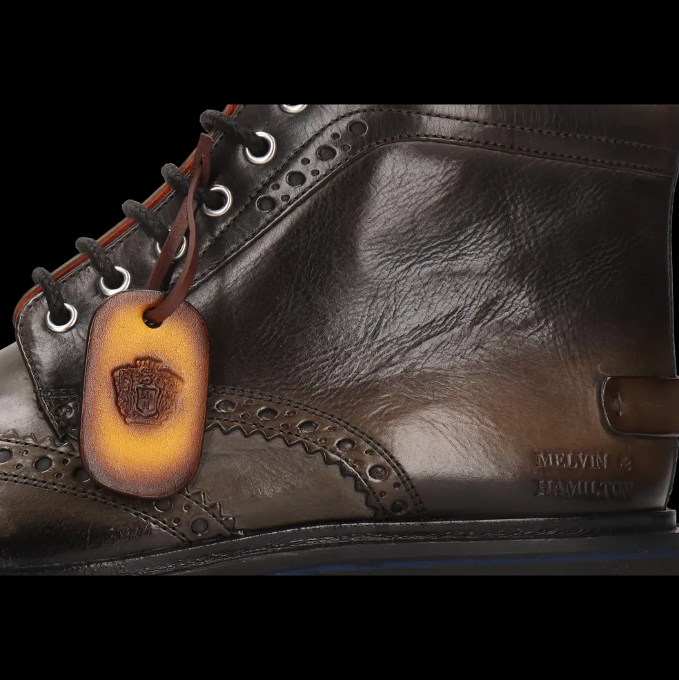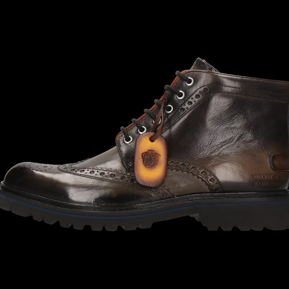 Craquez pour la collection automne/hiver de bottines en cuir pour homme par Melvin & Hamilton. La marque a mis tout son savoir-faire du travail du cuir dans la conception et la fabrication de bottines d’exception, modèles phares de la saison froide. Avec ce modèle Pierce 21, vous faites le choix de la qualité !Des bottines à bout rond en Cuir de veau tannage végétal Vert, rien de plus classique et de plus élégant même avec une petite touche originale, pour accompagner toutes vos tenues et notamment pour un look business chic. Ces boots à semelle en Gomme noir se portent particulièrement bien en hiver pour garder vos pieds au chaud.