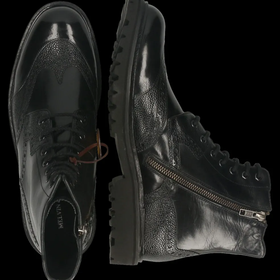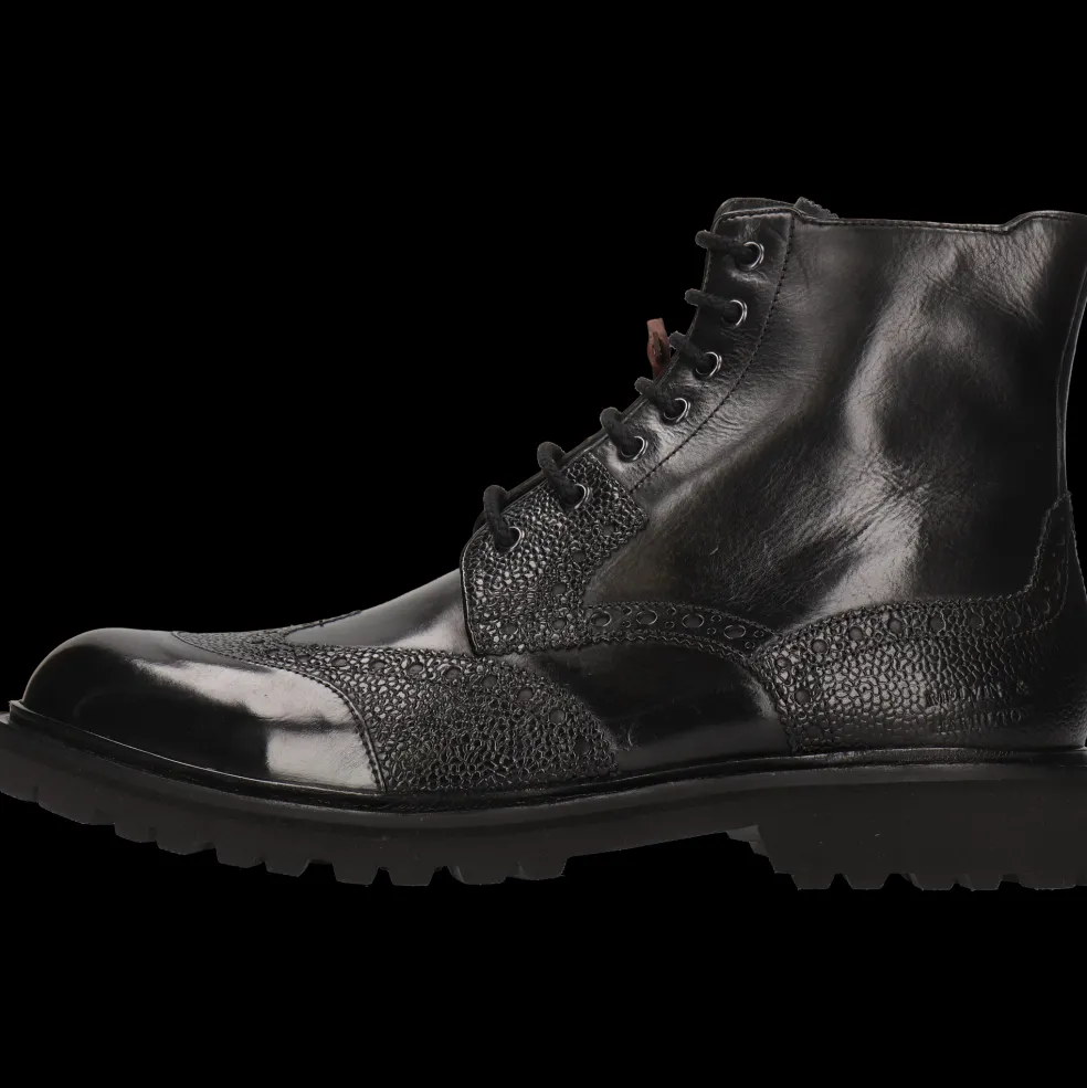 Craquez pour la collection automne/hiver de bottines en cuir pour homme par Melvin & Hamilton. La marque a mis tout son savoir-faire du travail du cuir dans la conception et la fabrication de bottines d’exception, modèles phares de la saison froide. Avec ce modèle Pierce 29, vous faites le choix de la qualité !Des bottines à bout rond en Cuir de veau tannage végétal Noir, rien de plus classique et de plus élégant même avec une petite touche originale, pour accompagner toutes vos tenues et notamment pour un look business chic. Ces boots à semelle en Gomme noir se portent particulièrement bien en hiver pour garder vos pieds au chaud.