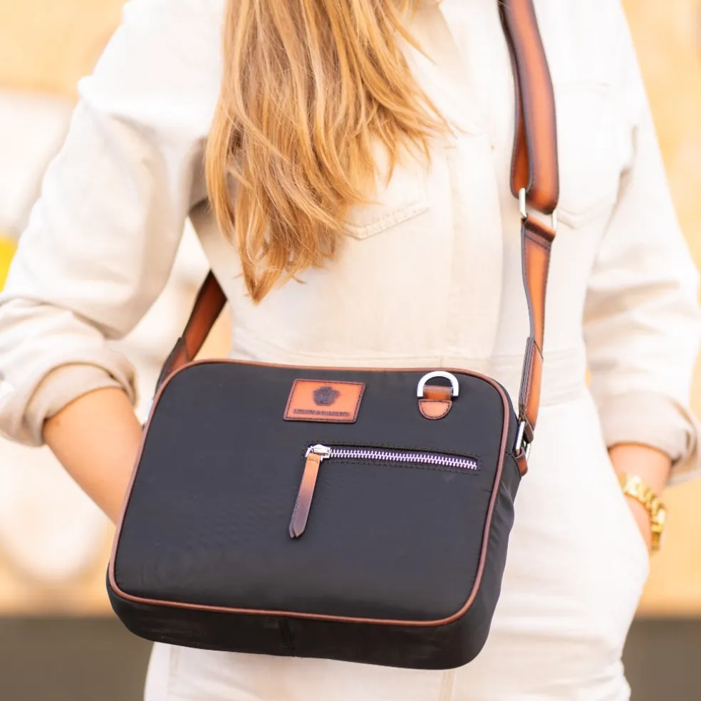 Vous cherchez un nouveau sac à main qui sorte de l’ordinaire ? Le sac à main noir Quebec dessiné par Melvin & Hamilton est le choix idéal ! Avec des dimensions généreuses pour y mettre de nombreux objets et effets personnels, ce sac en textile se distingue par son côté esthétique et fashion. Pouvant être porté à l’épaule, sous le bras ou en bandoulière, notre sac s’adaptera à toutes les envies en plus d’être pratique. La bandoulière en cuir de vache imprimé animal apporte une touche tendance et rock-chic à votre look. Il n’attend plus que vous !