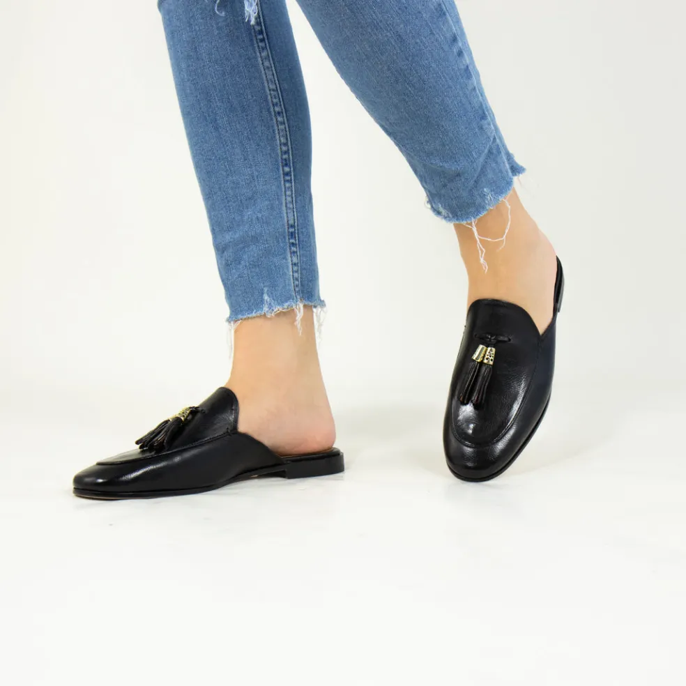 Melvin & Hamilton présente sa collection printemps/été de mules pour femme. En version ouverte ou fermée au bout, les mules élégantes sont indispensables à votre garde-robe. Découvrez notre modèle en cuir Scarlett 2, son caractère et comment le porter. Bien que la forme des mules soit moins conventionnelle que des chaussures à lacets, ce modèle de mules en cuir noir reste classique et se marie très bien avec une tenue élégante en toutes circonstances. Et en particulier en été, elles apporteront de la légèreté à un look chic.