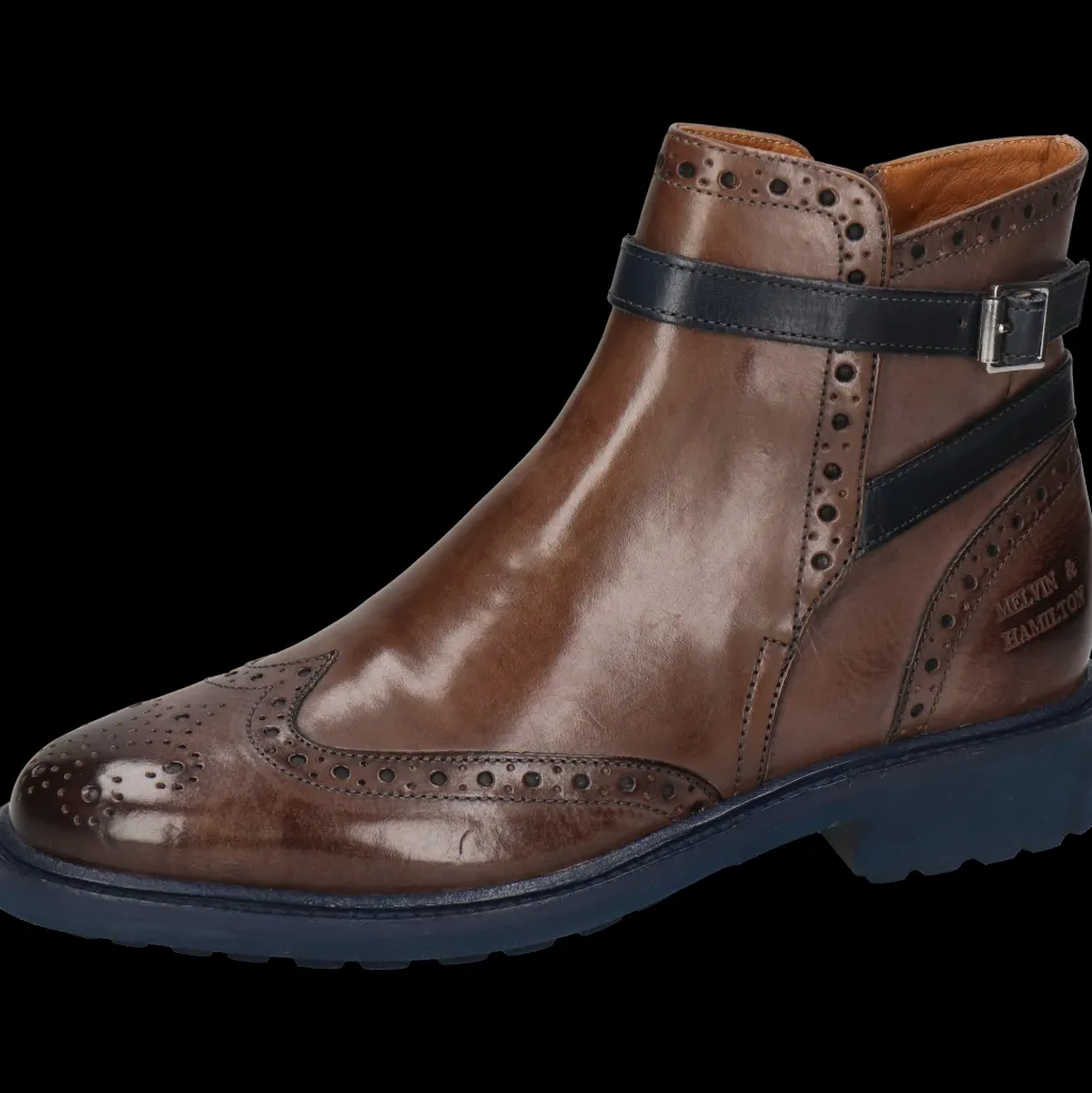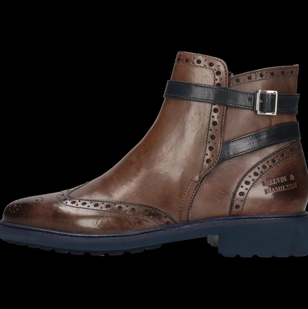 Melvin & Hamilton présente sa collection automne/hiver de bottines pour femme. La marque a mis tout son savoir-faire du travail du cuir dans la conception et la fabrication de bottines d’exception, modèles phares de la saison froide. Voici les caractéristiques de notre modèle de boots en cuir Selina 25.Ce modèle à bout rond en Cuir de veau tannage végétal Marron avec sa semelle en Gomme bleue est un modèle intemporel qui ira avec tous vos looks de la saison froide, du plus classique au plus tendance, pour le travail ou vos sorties. Choisir ces boots à , qu’elles soient classiques ou avec des détails originaux mais discrets qui font toute la différence, c’est être assurée d’avoir toujours quelque chose à se mettre aux pieds en hiver !