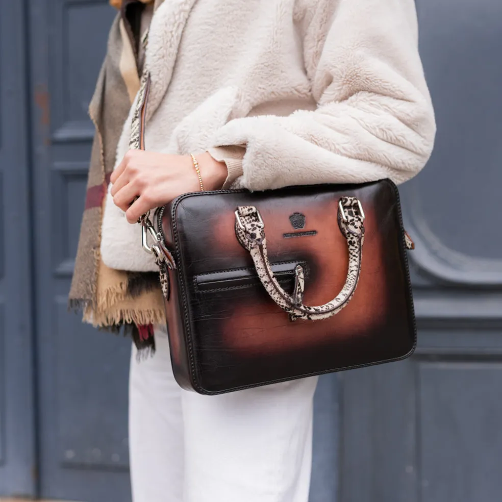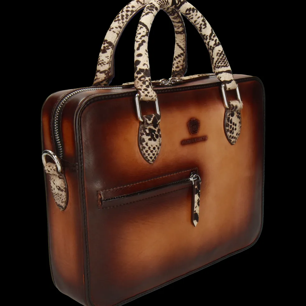 Vous cherchez un nouveau sac à main qui sorte de l’ordinaire ? Le sac à main Vancouver dessiné par Melvin & Hamilton est le choix idéal ! Avec des dimensions généreuses pour y mettre de nombreux objets et effets personnels, ce sac en cuir marron clair aux nuances sombres se distingue par son côté esthétique et fashion. Pouvant être porté à l’épaule, à la main ou en bandouilère, notre sac s’adaptera à toutes les envies en plus d’être pratique. Les poignées et la bandouilère en cuir de vachette imprimés animal apportent une touche tendance à votre look. Il n’attend plus que vous !