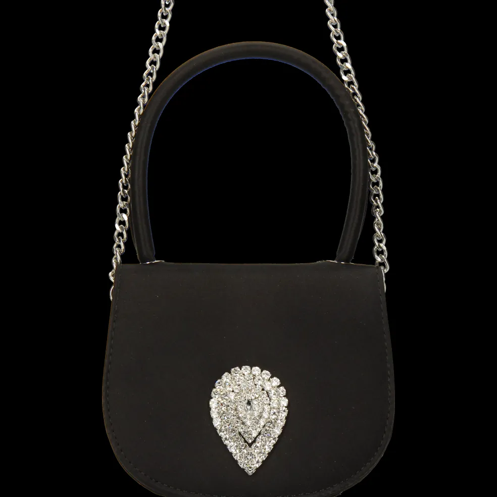 Melvin & Hamilton présente sa collection capsule exclusive en collaboration avec la marque italienne Fratelli Russo. Ce mini sac à main noir, décoré d’un fermoir magnétique en forme de goutte d’eau en cristaux, est fabriqué en Italie. Viola dégage une aura à la fois discrète et mystérieuse. La surpiqûre ton sur ton apporte une finition artisanale à ce sac en satin. La chaîne en métal vous permet de porter ce mini-sac également sur l’épaule.