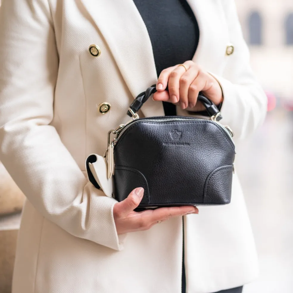 Vous cherchez un nouveau petit sac à main ? Le sac à main noir Zinnia dessiné par Melvin & Hamilton est le choix idéal ! Suffisamment grand pour y mettre vos effets personnels, ce sac en cuir de veau tannage végétal se distingue par son côté esthétique et fashion. Pouvant être porté à l’épaule, à la main ou en bandoulière, notre sac s’adaptera à toutes vos envies. La bandoulière en cuir de veau tannage végétal est souple et de qualité, elle ne vous lâchera pas ! Il est accompagné d’un petit boitier de rangement pour écouteurs AirPods. Ce sac à main n’attend plus que vous !